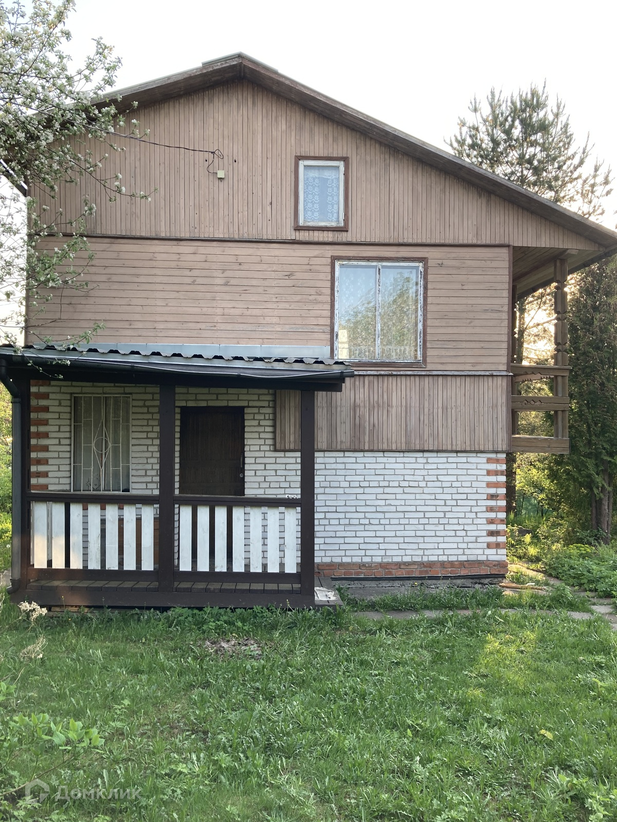 Садовый дом из кирпича и бруса, 2,5 этажа с гаражом и балконом на участке 6 соток .