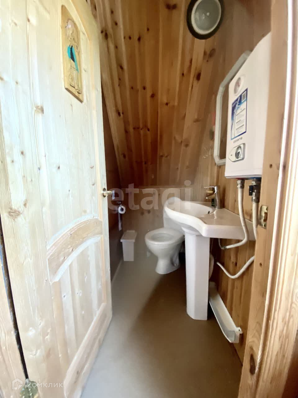 Вода из колодца глубиной 9 колец заведена как в дом так и в баню. Трубы проложены ниже глубины промерзания. Горячая вода обеспечивается наличием 3 бойлеров.