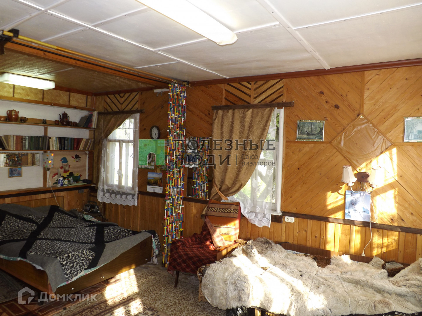 Садовый дом обшит сайдингом, внутри большая светлая комната с 5 окнами и веранда. Площадь 35 м2.