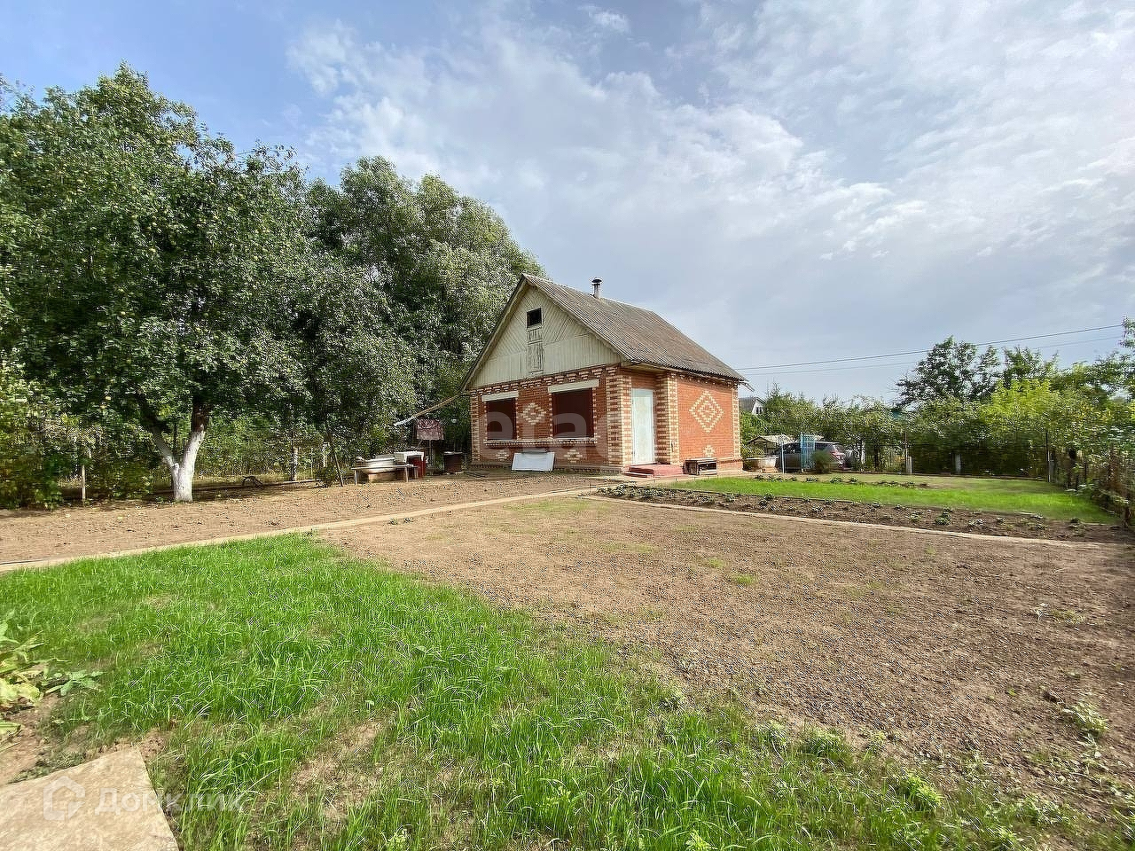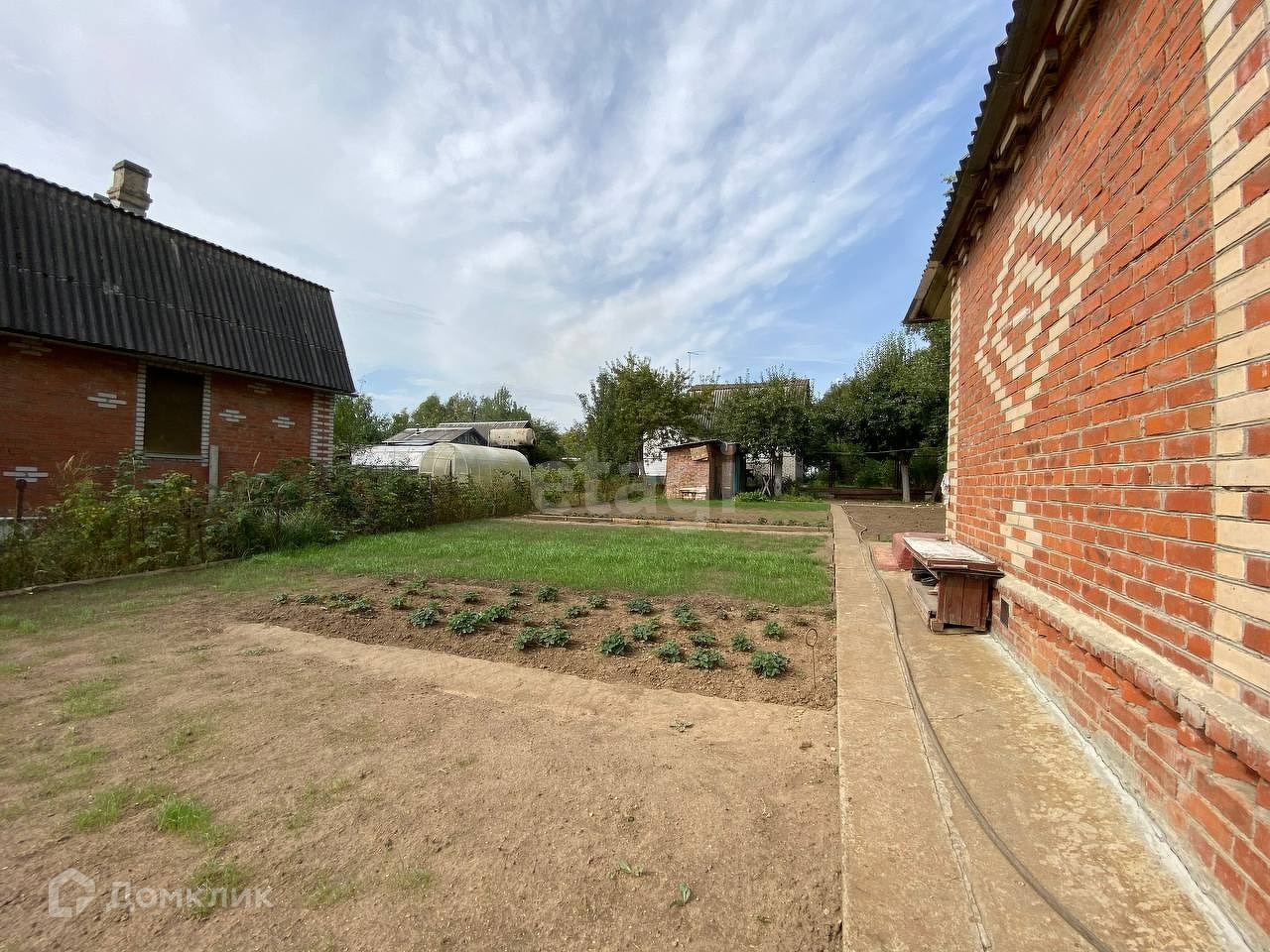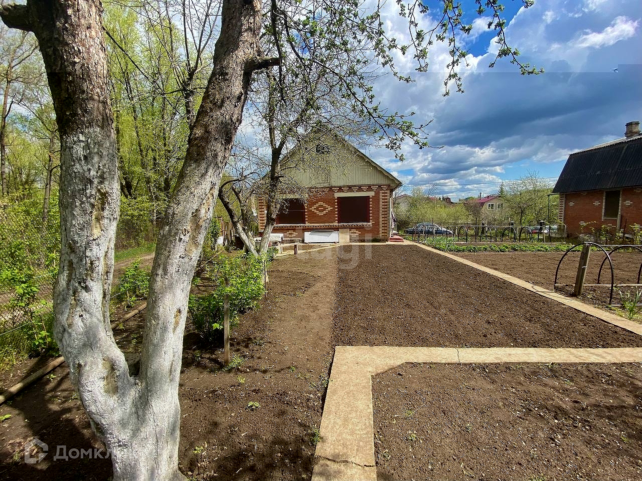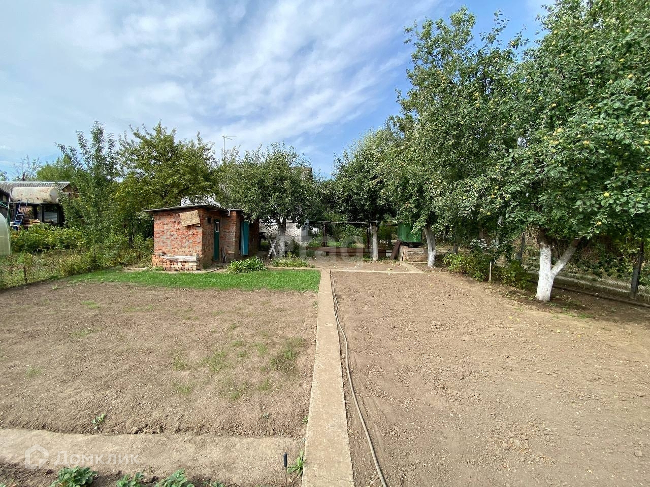 В саду растёт груша, зимняя яблоня, вишня, так же можно вести свой огород.