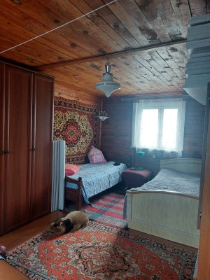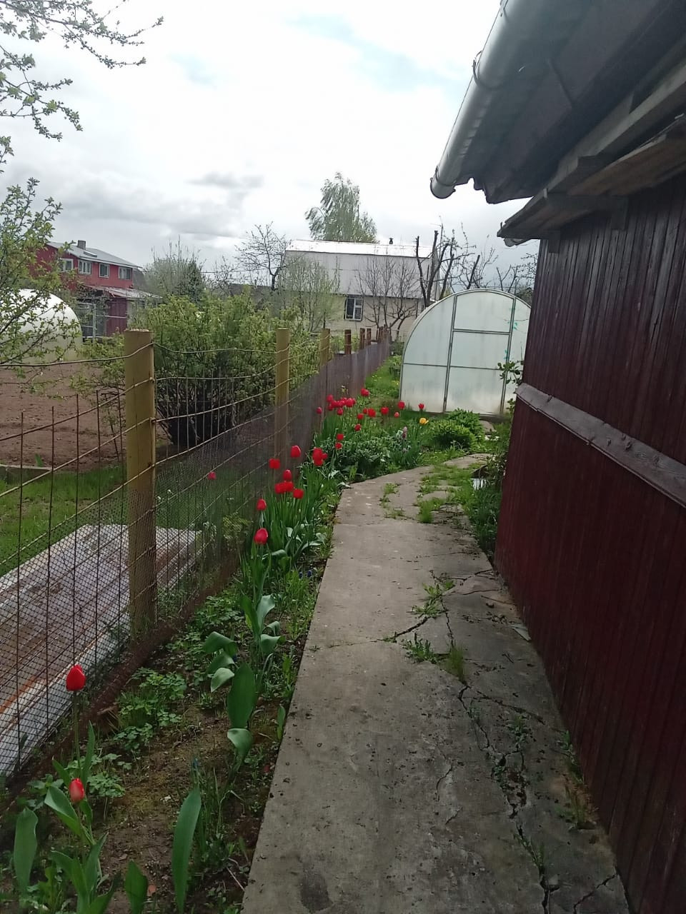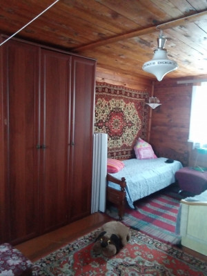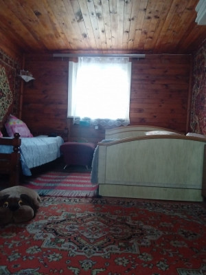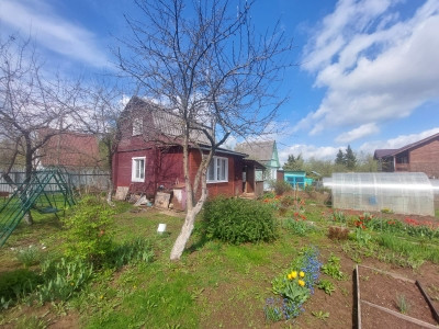 Дом построен в 2000 году из бревна и обшит вагонкой. Участок ровный, правильной формы. Огорожен с двух сторон сеткой рабицей, и с двух сторон профлистом. На участке расположены: теплица, уличный туалет, также много цветов и прекрасный яблоневый сад.