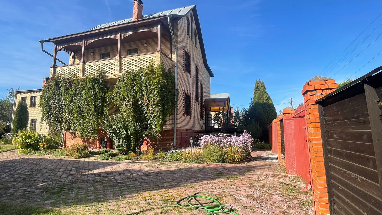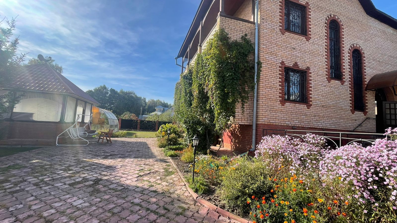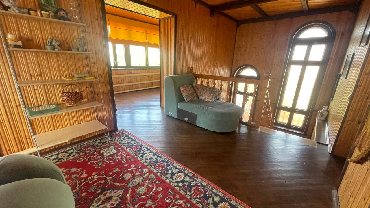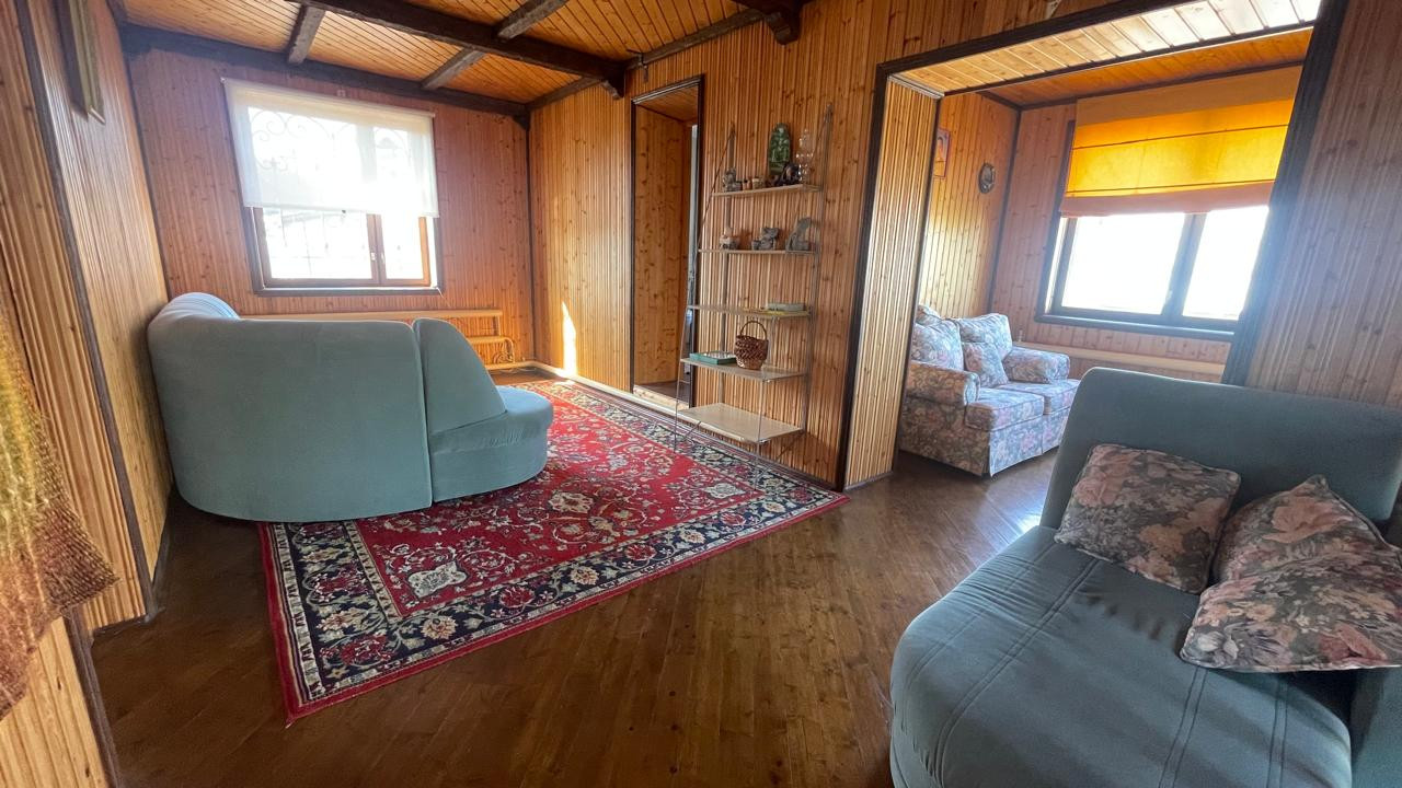 2. Гостевoй дoм-баня, матеpиал пocтрoйки: киpпич; фундaмент: блoчный, перекрытия желeзобeтонные. Внутр. отделка - дерево, окна - деревянные стеклопакеты, отопление- электрокотел. Общ. площадь: 54,3 кв.м