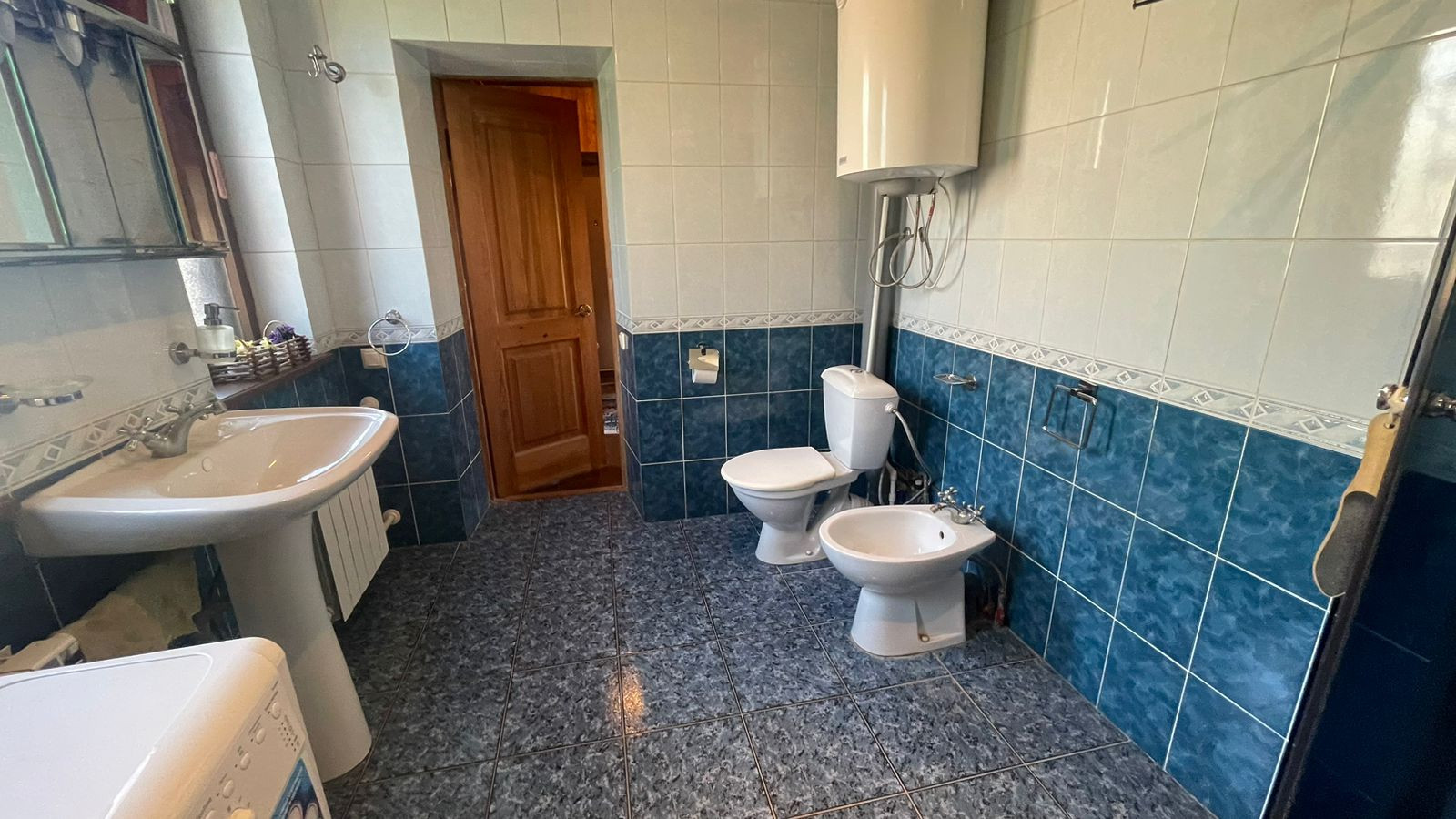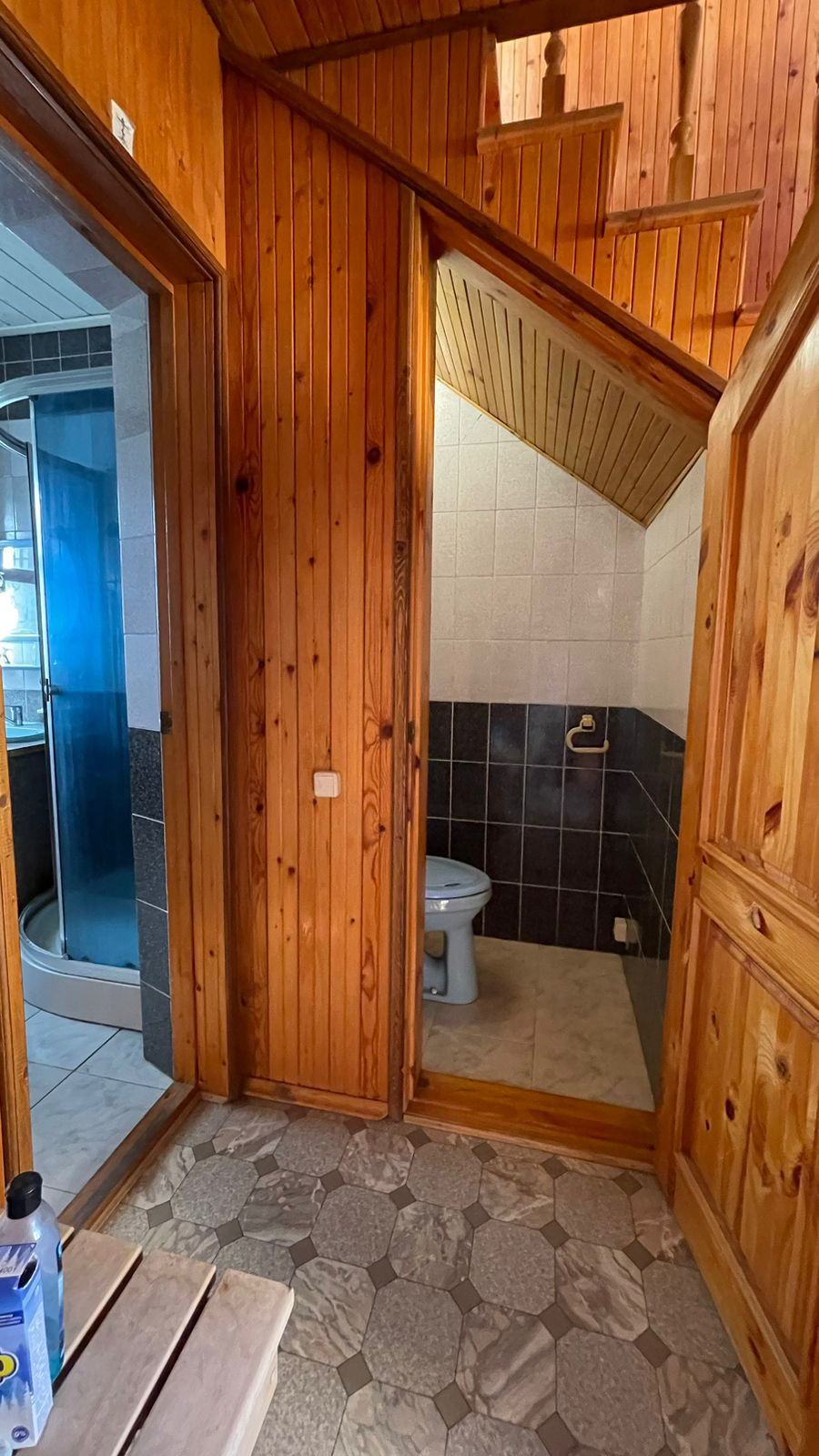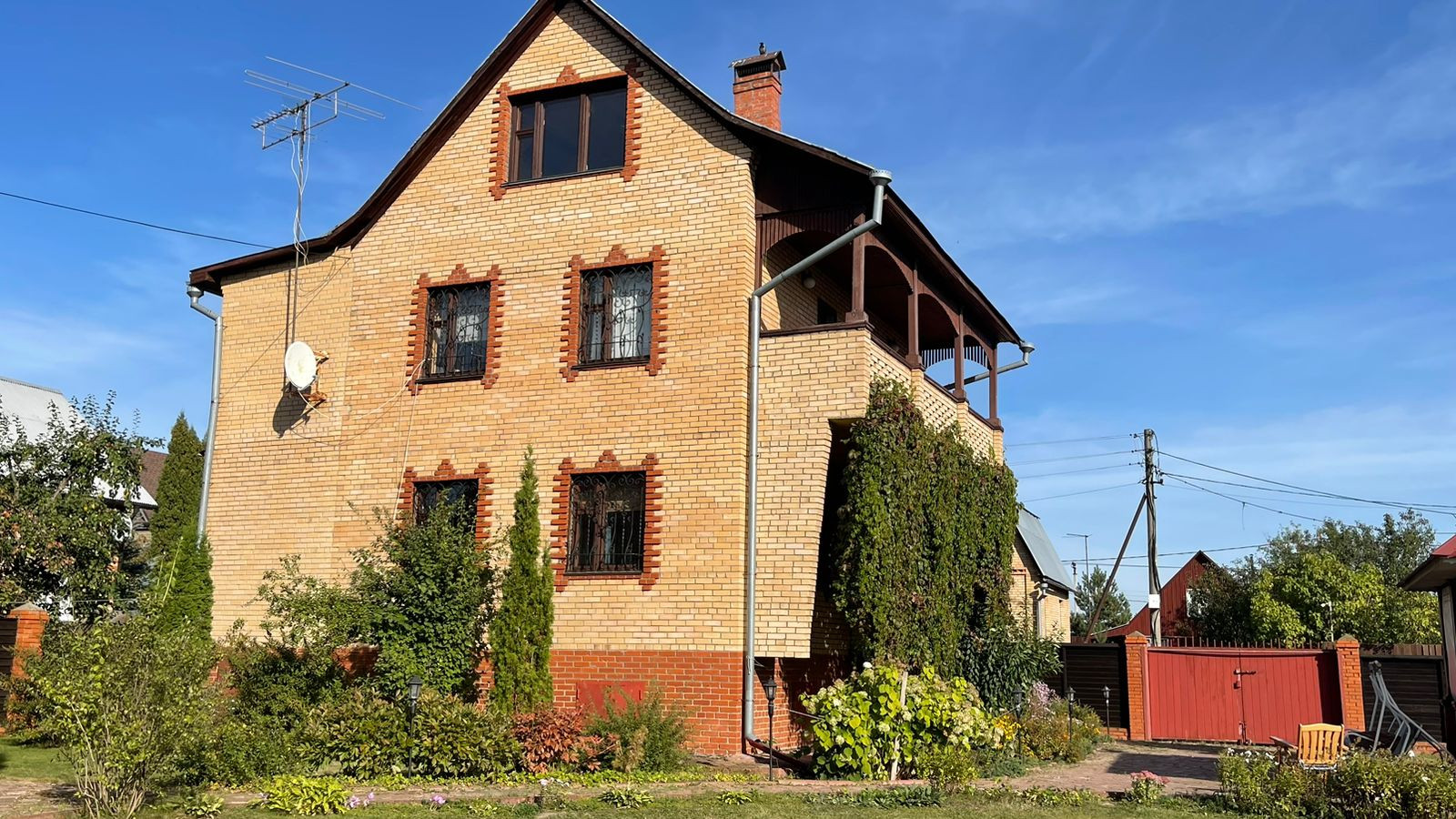 2. Гостевoй дoм-баня, матеpиал пocтрoйки: киpпич; фундaмент: блoчный, перекрытия желeзобeтонные. Внутр. отделка - дерево, окна - деревянные стеклопакеты, отопление- электрокотел. Общ. площадь: 54,3 кв.м
