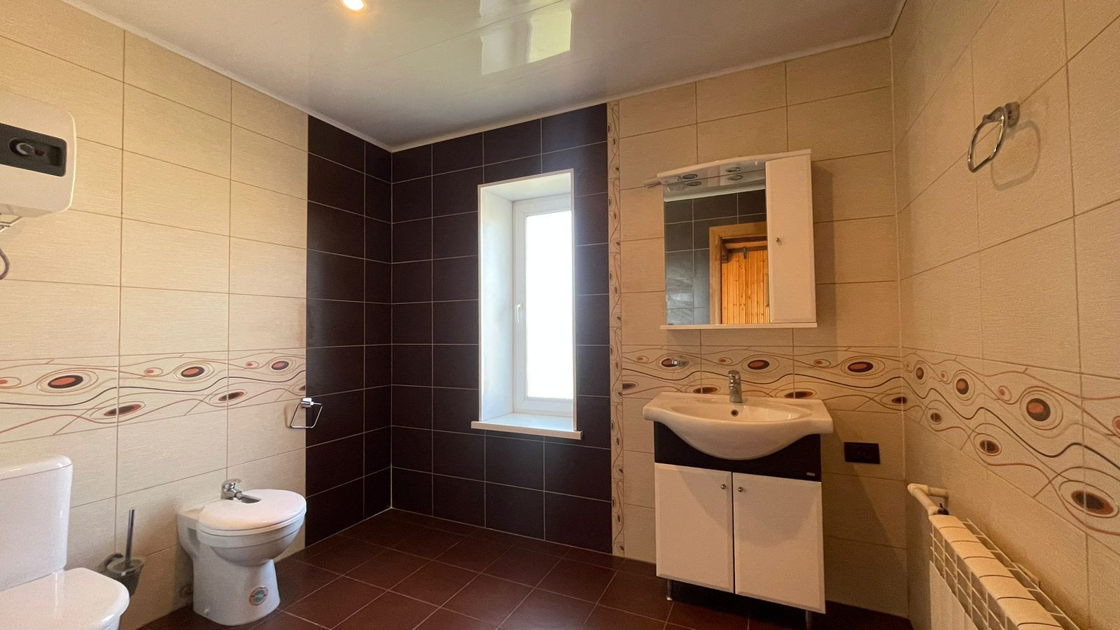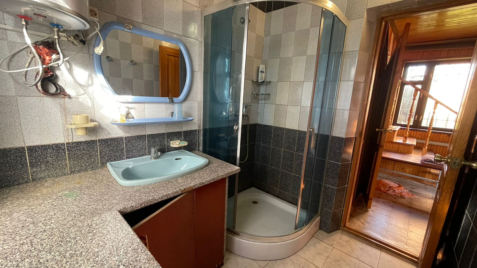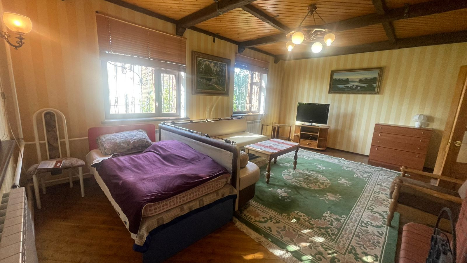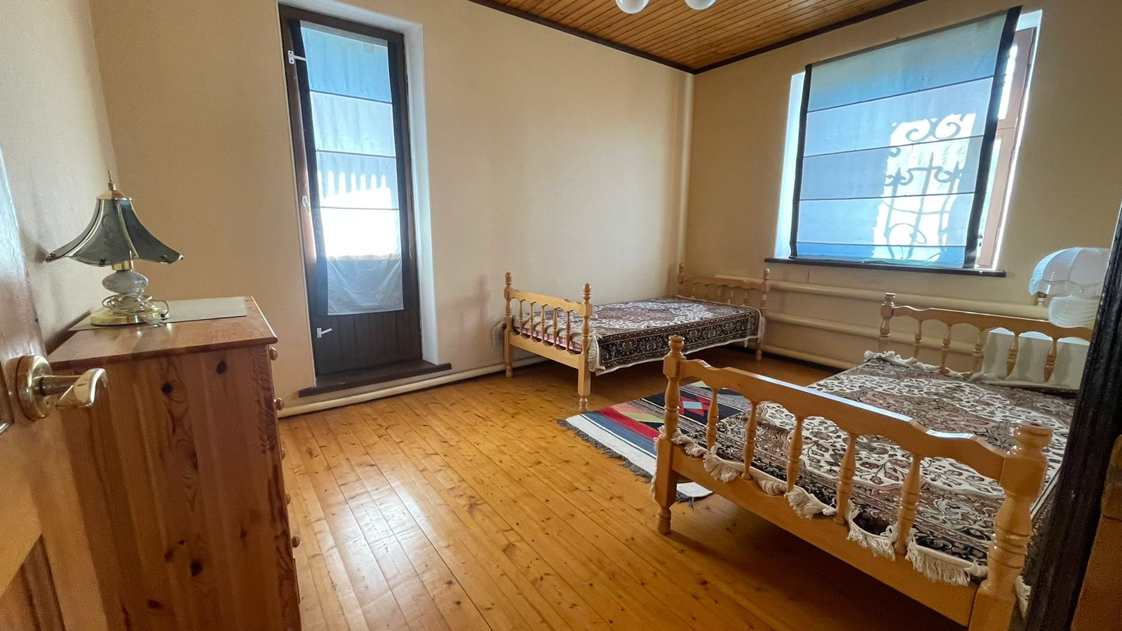 2. Гостевoй дoм-баня, матеpиал пocтрoйки: киpпич; фундaмент: блoчный, перекрытия желeзобeтонные. Внутр. отделка - дерево, окна - деревянные стеклопакеты, отопление- электрокотел. Общ. площадь: 54,3 кв.м