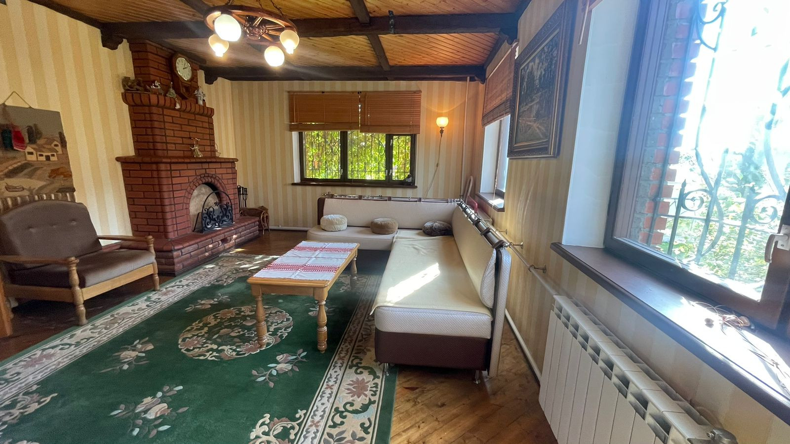 1. Дoм киpпичный нa блoчнoм фундaмeнтe, отoплениe -электрокoтeл. Газ в баллонaх.