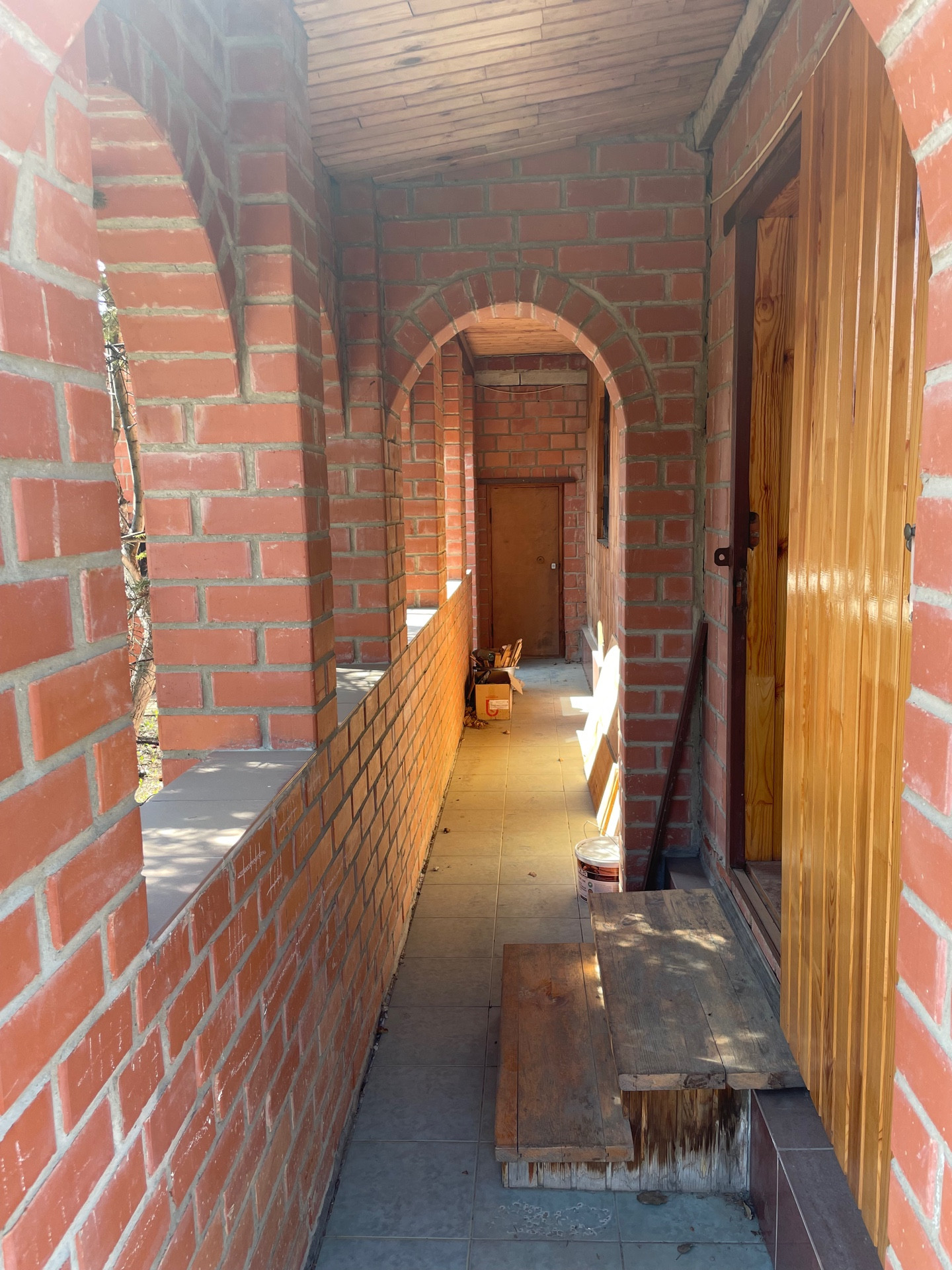 - По всему участку проложены дорожки из кирпича