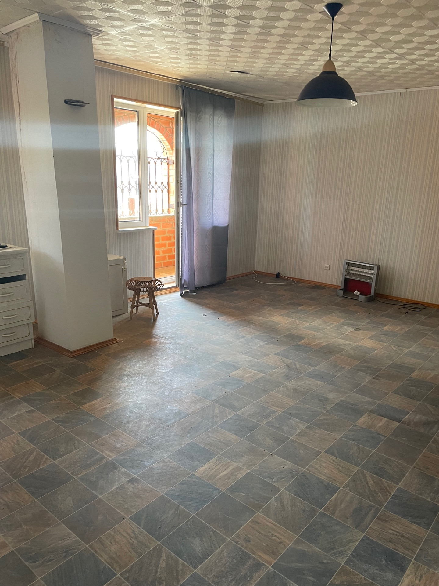- Кухонная зона с установленным гарнитуром, дровяная печь, обеденная зона.