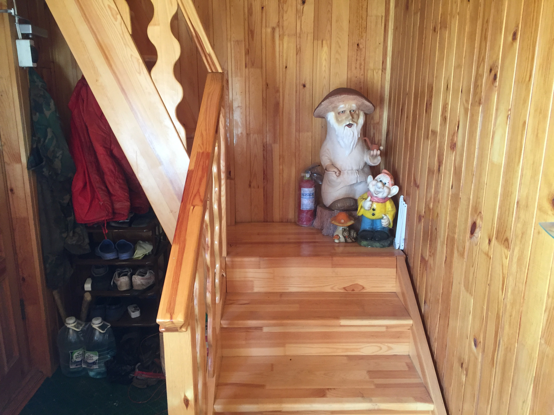 На третьем этаже, полностью отделанная мансарда.