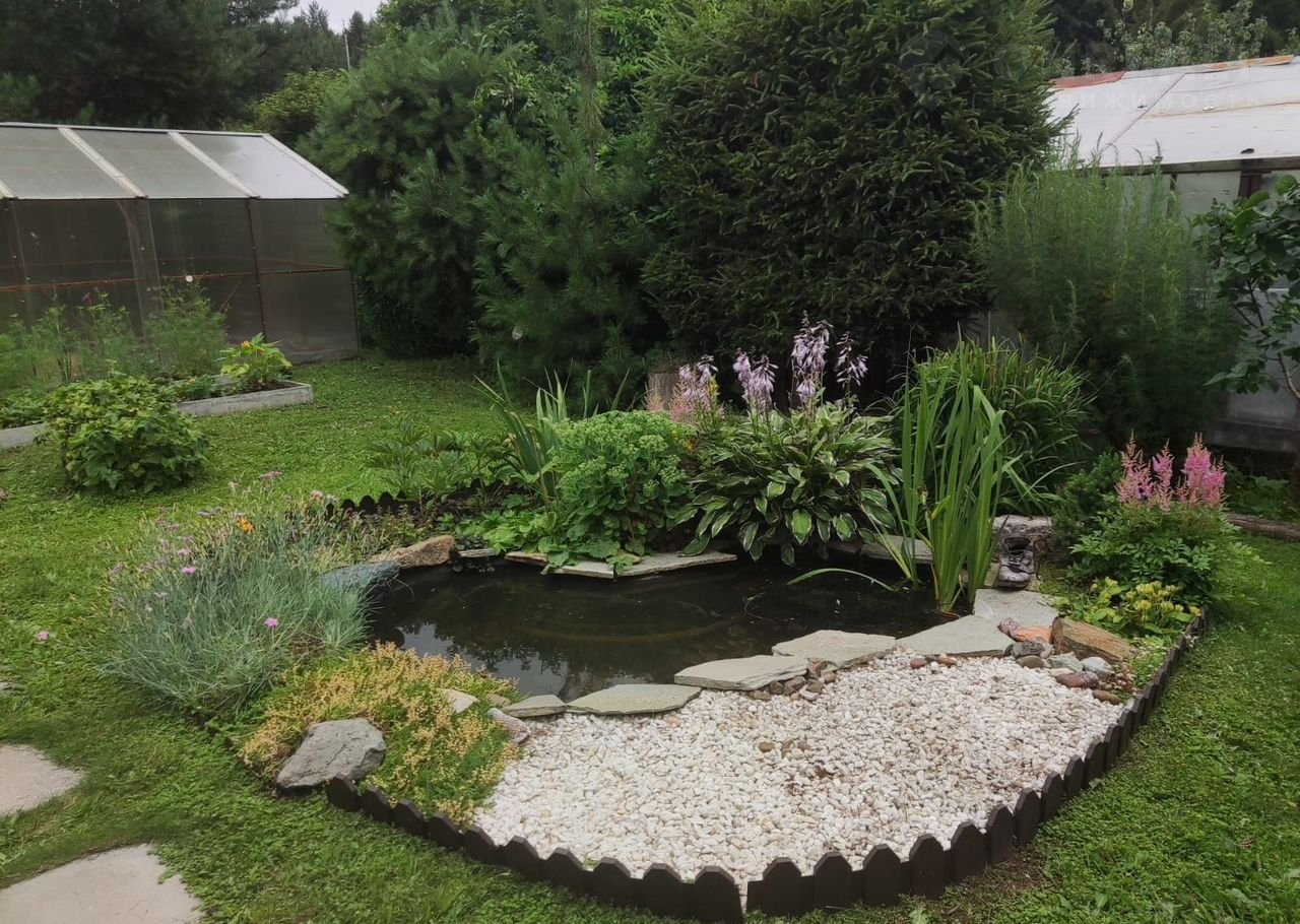 Участок ухоженный, имеются хвойные посадки (ель канадская, туи), кусты смородины и малины, декоративный пруд, зона отдыха, дорожки облагорожены, выложены тротуарной плиткой. По периметру учаток огорожен забором.