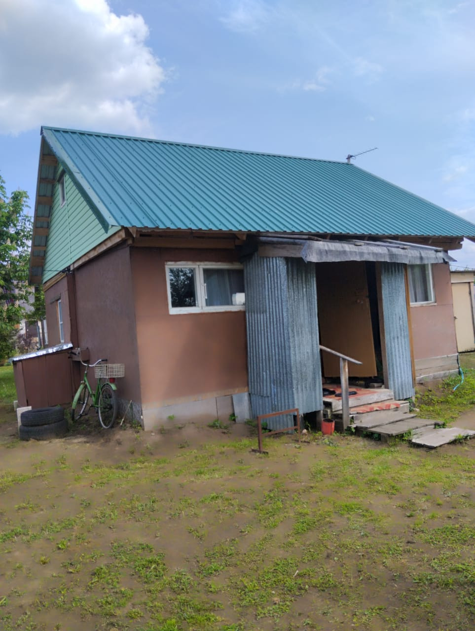Дом каркасный, крыша - металлическая оцинковка, фундамент - столбики из блоков. В доме три комнаты и небольшая кухня. Отделка  вагонкой. Без отопления. Вода - летний водопровод, электричество - 15 кВт, туалет и душ на улице. Состояние хорошее.