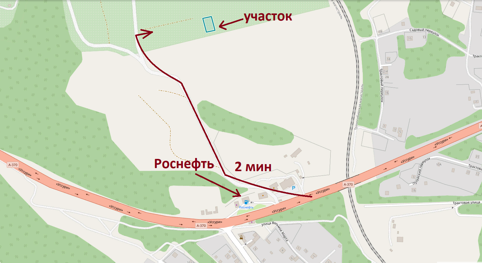 Поворот от федеральной трассы перед заправкой Роснефть и кафе "33 коровы". От поворота до участка - 5 мин.