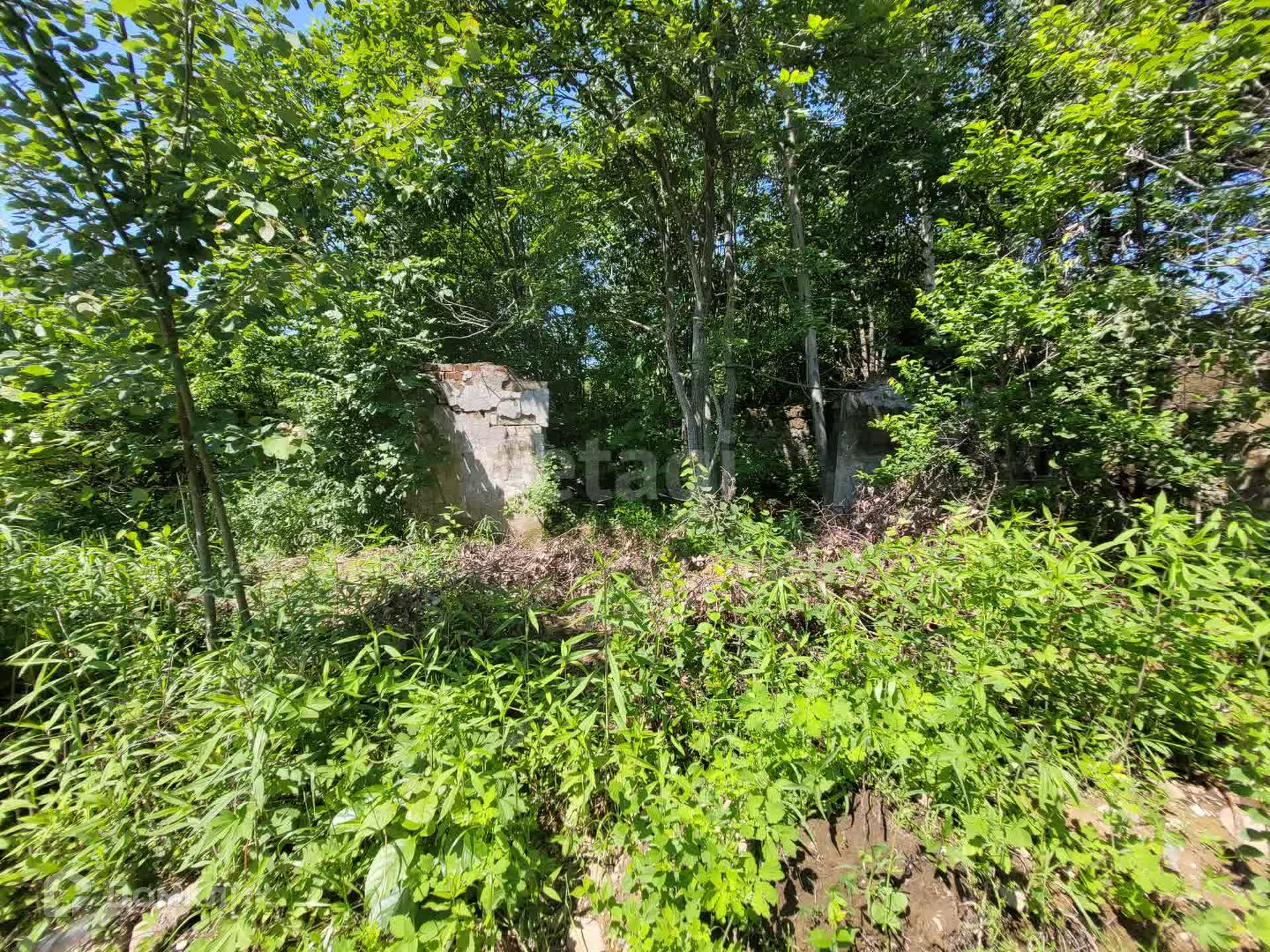 - На участке остался фундамент от разрушенного дома.