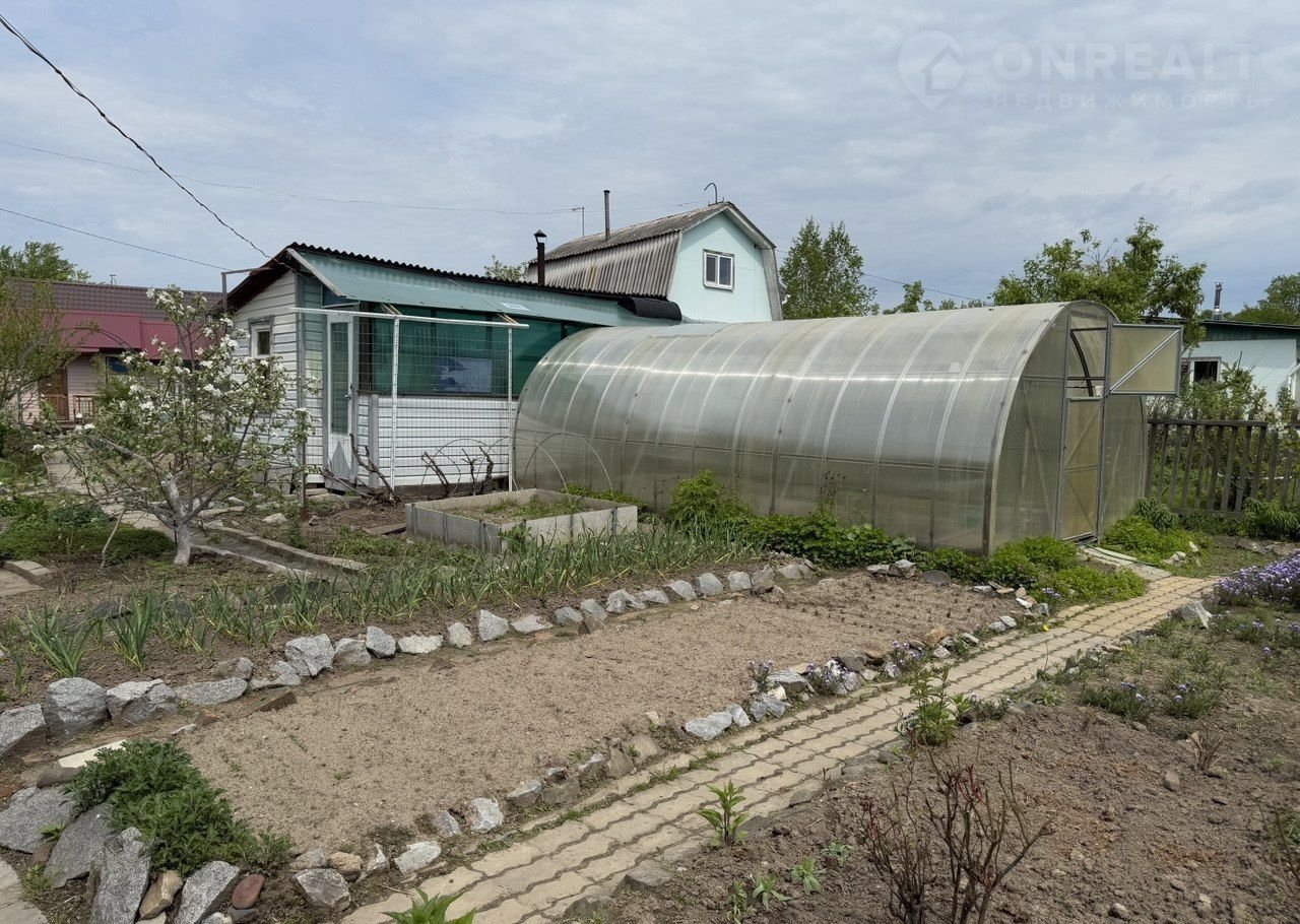 Пpoдaeтся oтличнaя дaча в садовoм общeствe «Побeда». Pacпoлoжeнa в тaкoм месте, где никoгда нe тoпит! Дачный участок 10 coтoк с домом 42 кв. м., мaнсаpдoй и бaлкoном. Дом деревянный из бpуca, обшит вагoнкoй, зaтeм сайдингoм, окна плacтиковыe. Пeчи в домe нет, весной и ocенью oтапливaeтcя электpокaлориферами. Кровля дома выполнена из стального профлиста. К дому пристроен навес, под которым столярный верстак и циркулярная пила. С внешней стороны навес заплетен диким виноградом. В дом подведена вода из 1,2 кубового резервуара из нержавеющей стали, к которому подключен насос. Вода включается из кухни, проходит через водонагреватель, что удобно для мытья посулы. Сток воды идет в канаву за пределы участка, грязи и запаха нет. СНТ «Победа имеет поливочный трубопровод. Вода подведена к каждому участку и закачивается из Пемзенской протоки, от нее до дачи 150- 200 метров. От въезда на участок в 20 метрах, у заброшенной дамбы, искусственный водоем, нанимали большой экскаватор. Качаем оттуда воду для полива, если случается поломка на дачном центральном водопроводе. Питьевая вода доступла из общественного колодца, который находится от дома в 250 метах. Вода ежегодно сдается на анализ. Так же на участке расположена летняя кухня из кирпича и обдлицовочной плитки, установлены пластиковые окна, имеется металлическая печь. Под полом подвал из ж/д 3-х тонного контейнера, стеллажи и лестница металлические. Кровля- ондулин. Под крышей кладовка. Есть баня, сделана из кунга с пристройкой для душа, отдыха, раздевалкой. В бане парная и помывочная. Построен двухсекционный сарай. В первой секции- размещена мастерская:-верстак, тисы, сварочный трансформатор, электронаждак. Пластиковое окно, наверху кладовая. Во второй секции – дровяник, умывальник, пластиковый дачный туалет с дверью и вытяжкой. Наверху кладовая. К сараю пристроен навес для инвентаря, имеется компостная яма. Вдоль сарая шпалера вьюнов и актинидии. Забор от соседей сетка и увит лимонником, пользуемся вместе. Теплицы на участке из поликарбоната 4 штуки:- 3 шт. 6Х3 и одна 8Х3. Автоматическое проветривание на 2-х теплицах. На остальных форточки. Грядки в теплицах из асбоцементных панелей. Забор на участке из профлиста. Дача угловая, поэтому забор 70м. Вдоль забора сосны, вишни, 40 кустов сирени и акации, а также смородина. Через широкий проезд- сосны, ели, боярышник, маньчжурский орех, кедр… С внешней стороны дамба и лесополоса. Получается, как хутор из шести домов. Соседи хорошие, проверено десятилетиями совместной дачной жизни. Стоянка для автомобилей на улице у ворот на 2 машины, во дворе площадка, тоже можно ставить 2 машины. А так же рядом с участком автобусная остановка, добираться на автобусе очень удобно. На даче имеется беседка, просторная, стол на 6 человек. Беседка закрыта от ветра поликарбонатом, кровля из профлиста. Беседка увита лимонником и диким виноградом, рядом установлен- большой ручной точильный камень. Имеется зона отдыха: Под навесом из поликарбоната диван- качели и бетонная площадка. Навес увит виноградом. Насаждения: Яблони, груша, сливы, вишни на кисточке и войлочная, ирга, жимолость, клубника, смородина черная и красная, крыжовник, виноград нескольких сортов, лимонник по забору и оплел беседку, калина, рябина, барбарис, курильский чай, сакура, форзиция, актинидия, розы и множество цветов. С внешней стороны к Центральной улице 