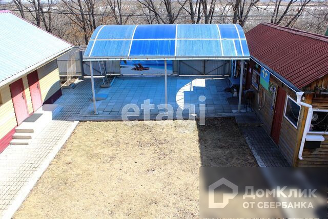 Участок ровный, благоустроенный, вымощен тротуарной плиткой и залит бетоном, разбит эксплуатируемый газон, есть огромный навес из поликарбоната, который можно использовать в том числе для автомобиля. Имеются летняя кухня и душ и даже мастерская, по всему участку разведена вода для полива, перед участком отсыпана щебнем площадка-парковка для нескольких авто.