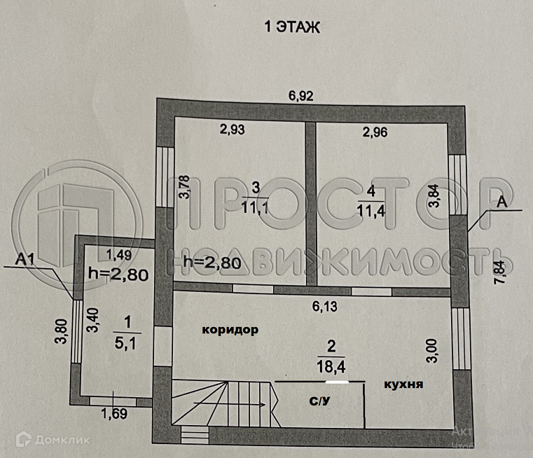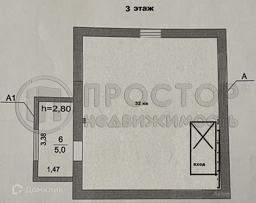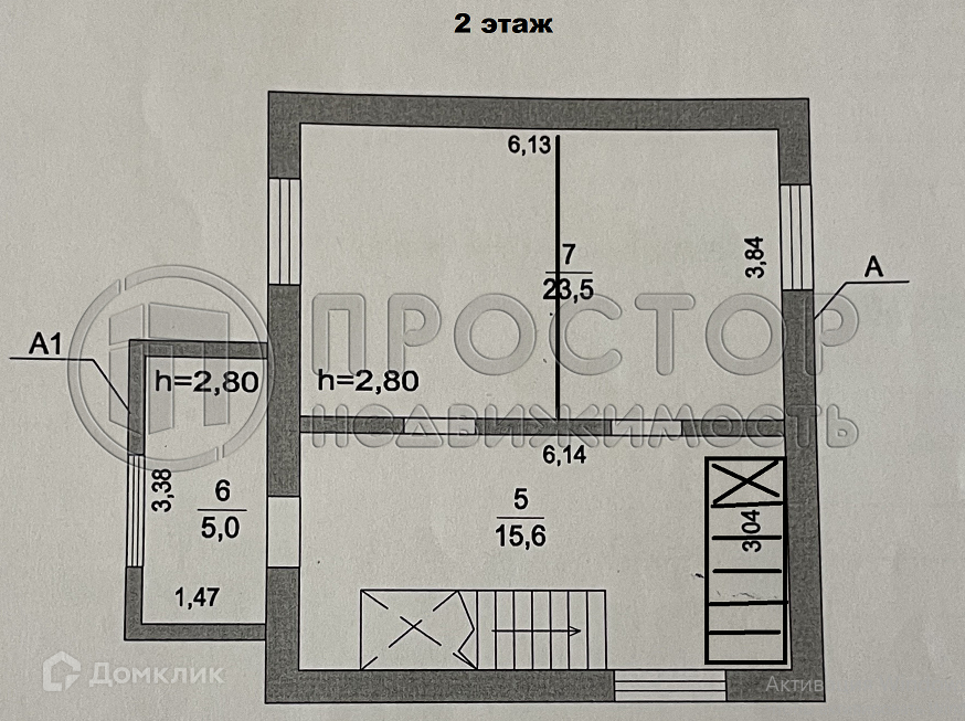 Высота потолков 2.8 м