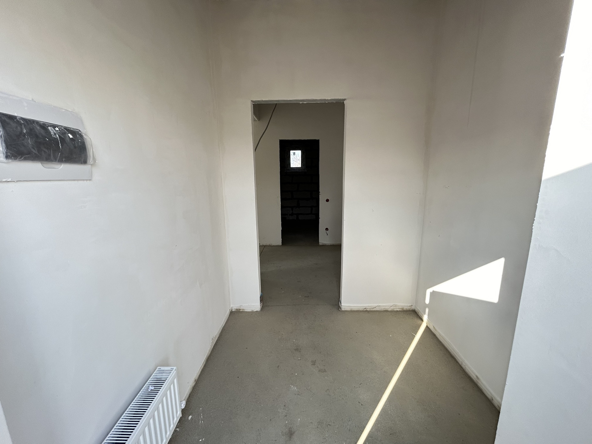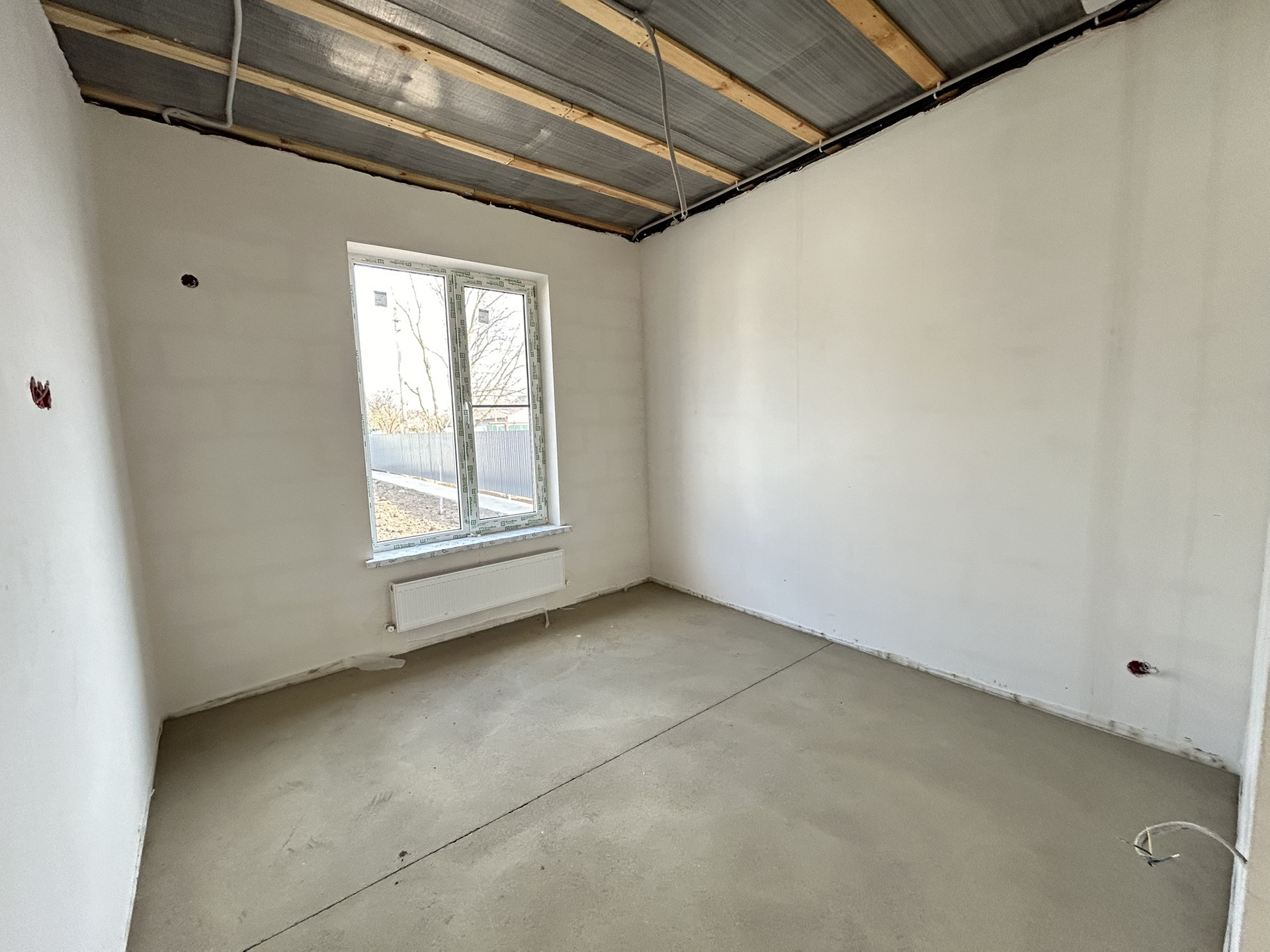 В доме предчистовая отделка, тёплые полы, полусухая стяжка пола, смонтировано отопление, установлены радиаторы, выполнены разводка электрики и сантехники, стены отштукатурены и отшпатлеваны.