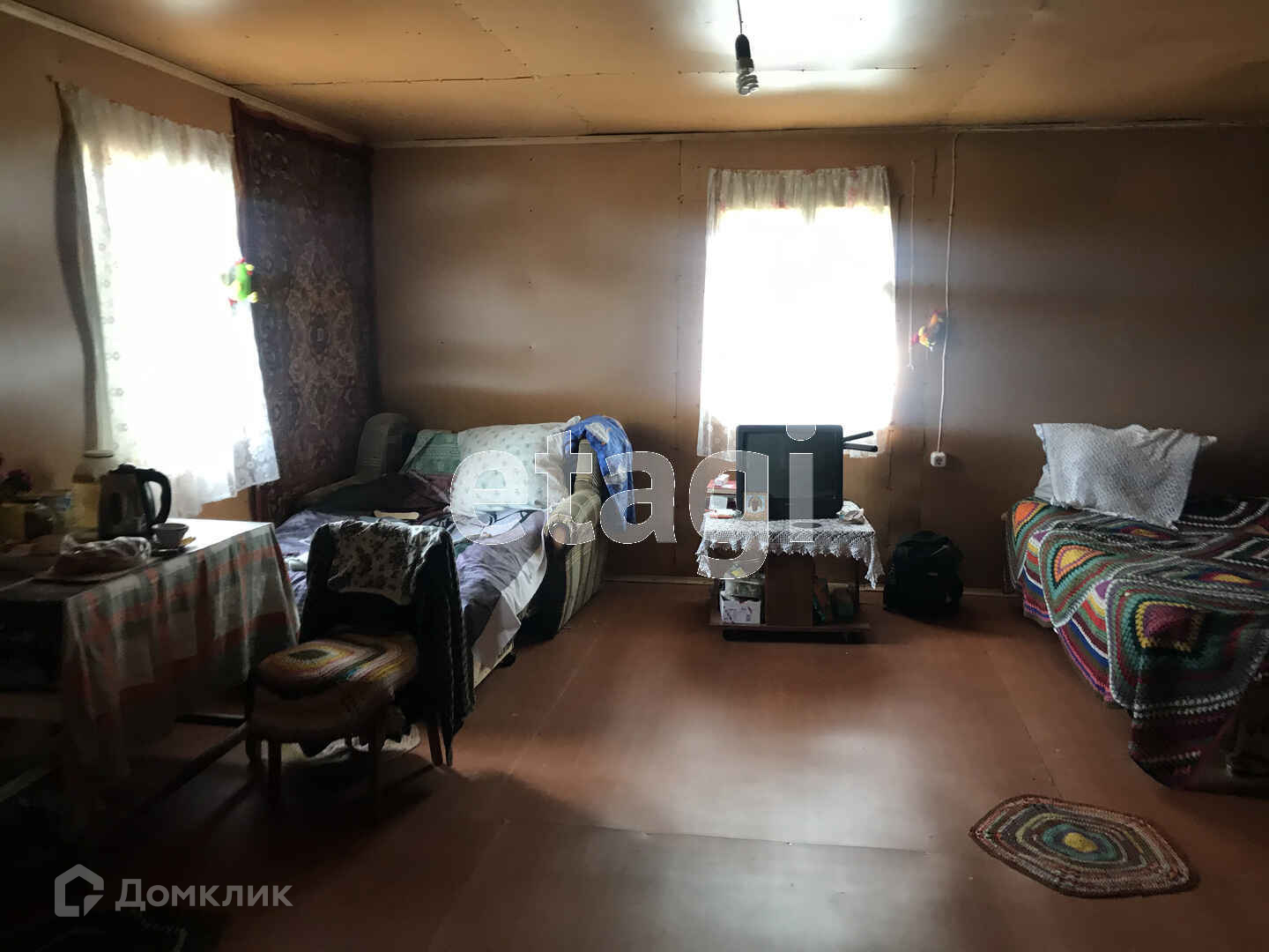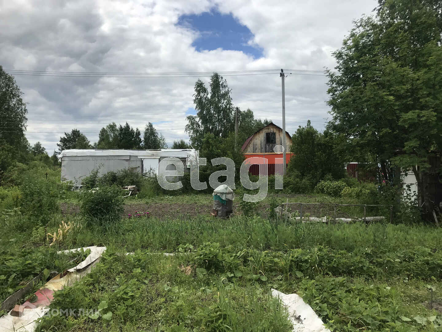 На участке Дом из бруса 5х6м + веранда 3х5м. Проведено электричество, также есть печка (дом прогревается за 15 минут зимой). Есть вагончик 6 м.кв. для садового инвентаря, три теплицы (дерево+стекло). Вода из скважины, плюс колодец.