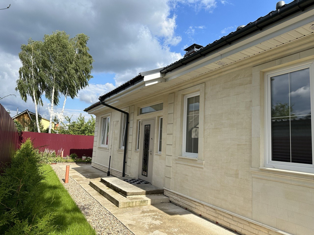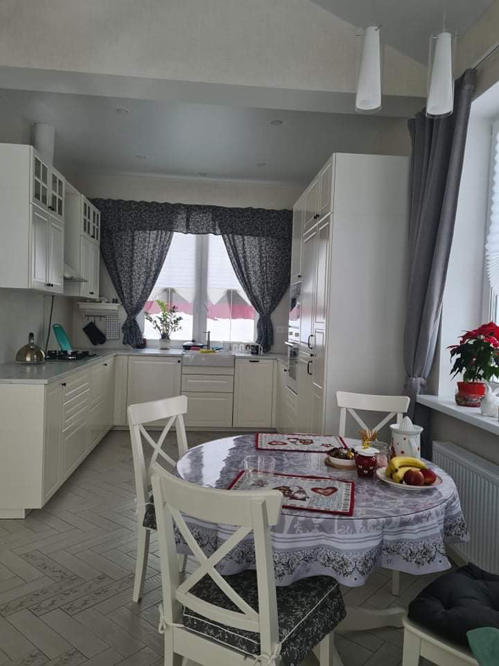 Дом выполнен в современном усадебном стиле. Размер: 13,8х9 м., чистая площадь 100 кв.м., имеется проект (в подарок), фото каждого этапа. 3 спальни и 2 санузла. Дом отлично держит тепло зимой и прохладу летом. Очень комфортный для проживания. Огромное чердачное помещение. Встроенная кухня, духовой шкаф, микроволновая печь, газовая варочная панель, вытяжка, стиральная машина, холодильник, морозильная камера.