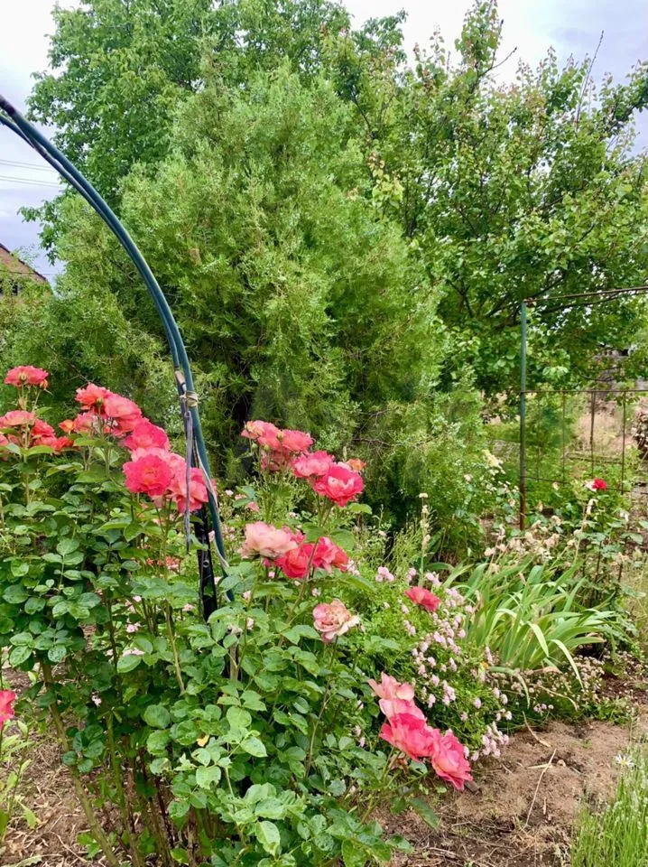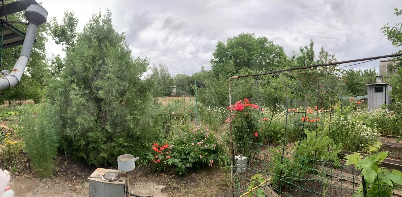 Туалет, душ на улице. Молодые фруктовые деревья, яблони, груша, черешня, вишня, слива, айва, калина, есть виноград, смородина разная, много роз, огород ухожен.