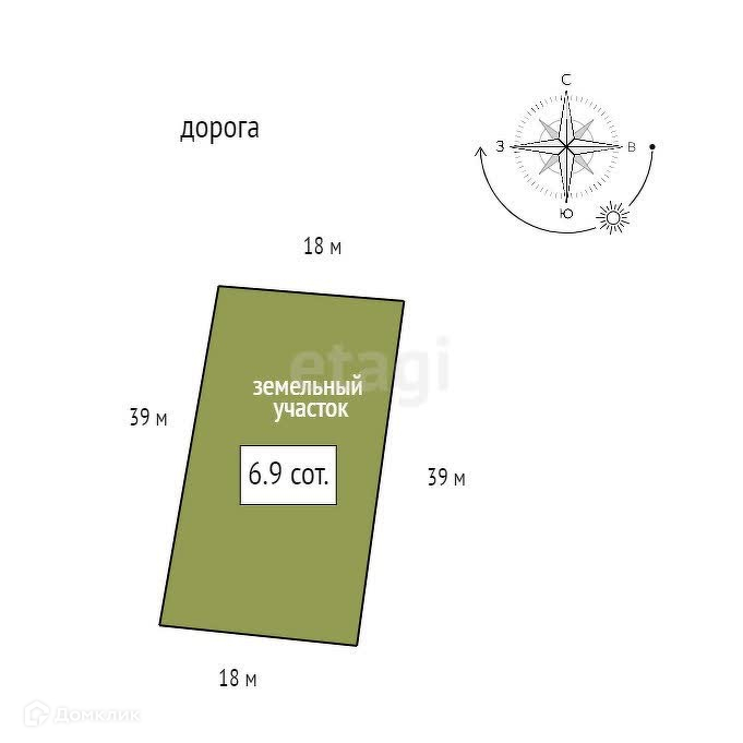 Площадь участка 6.9 сот.