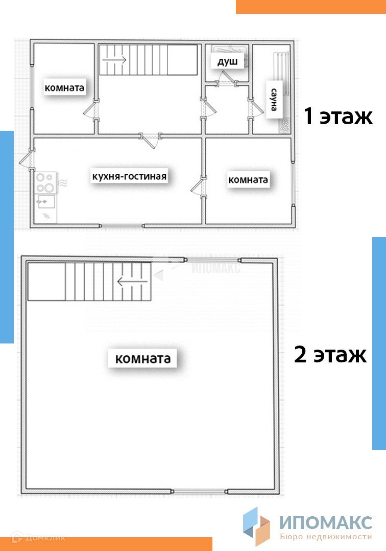 1 этаж: кухня-гостиная, 2 небольшие, но уютные спальни, сауна, ванная комната.