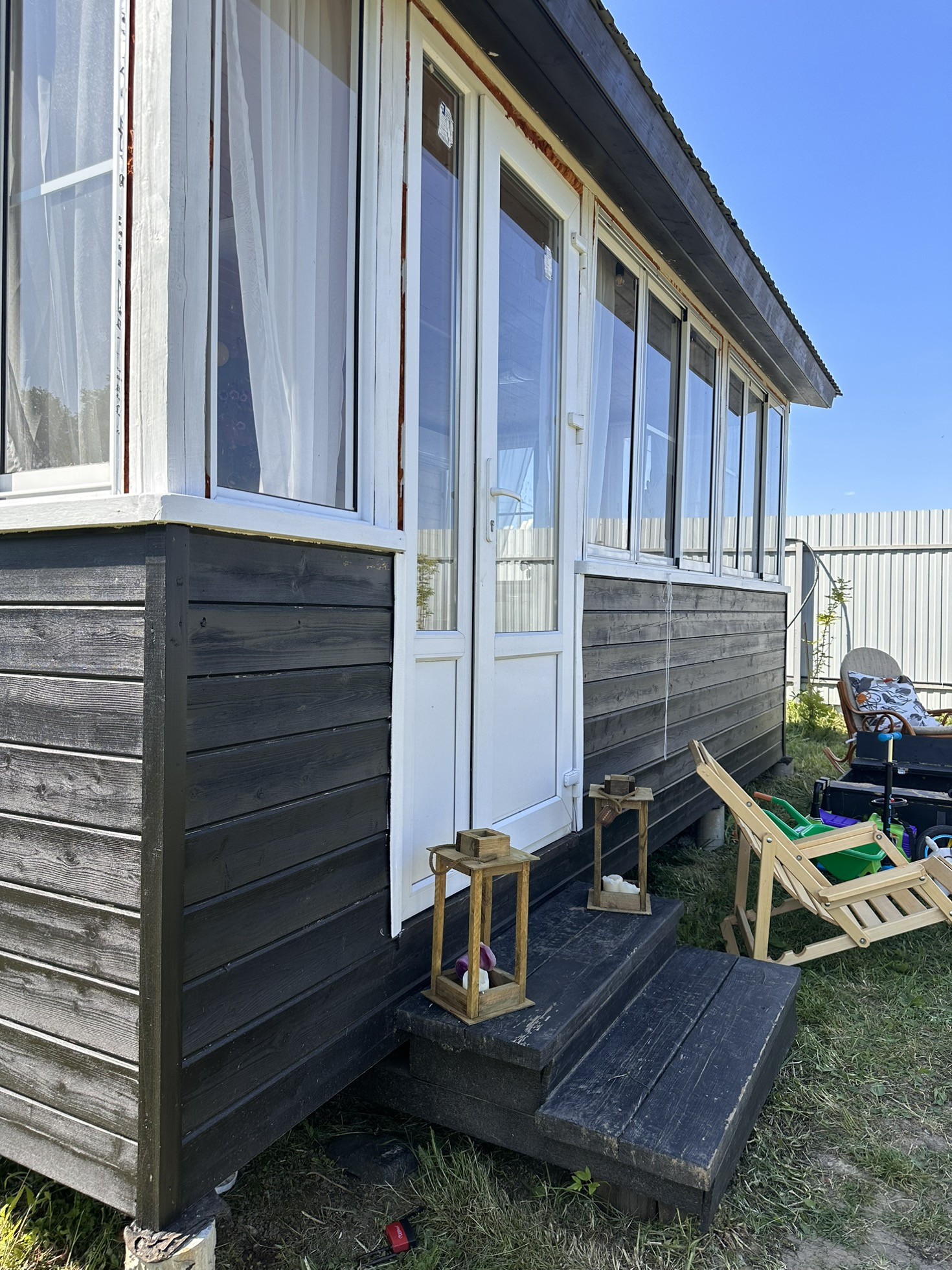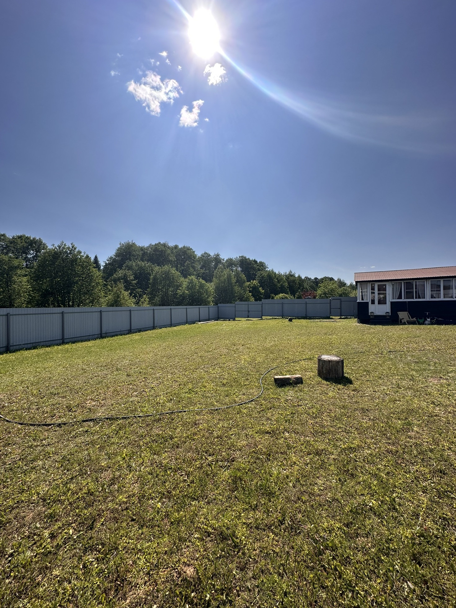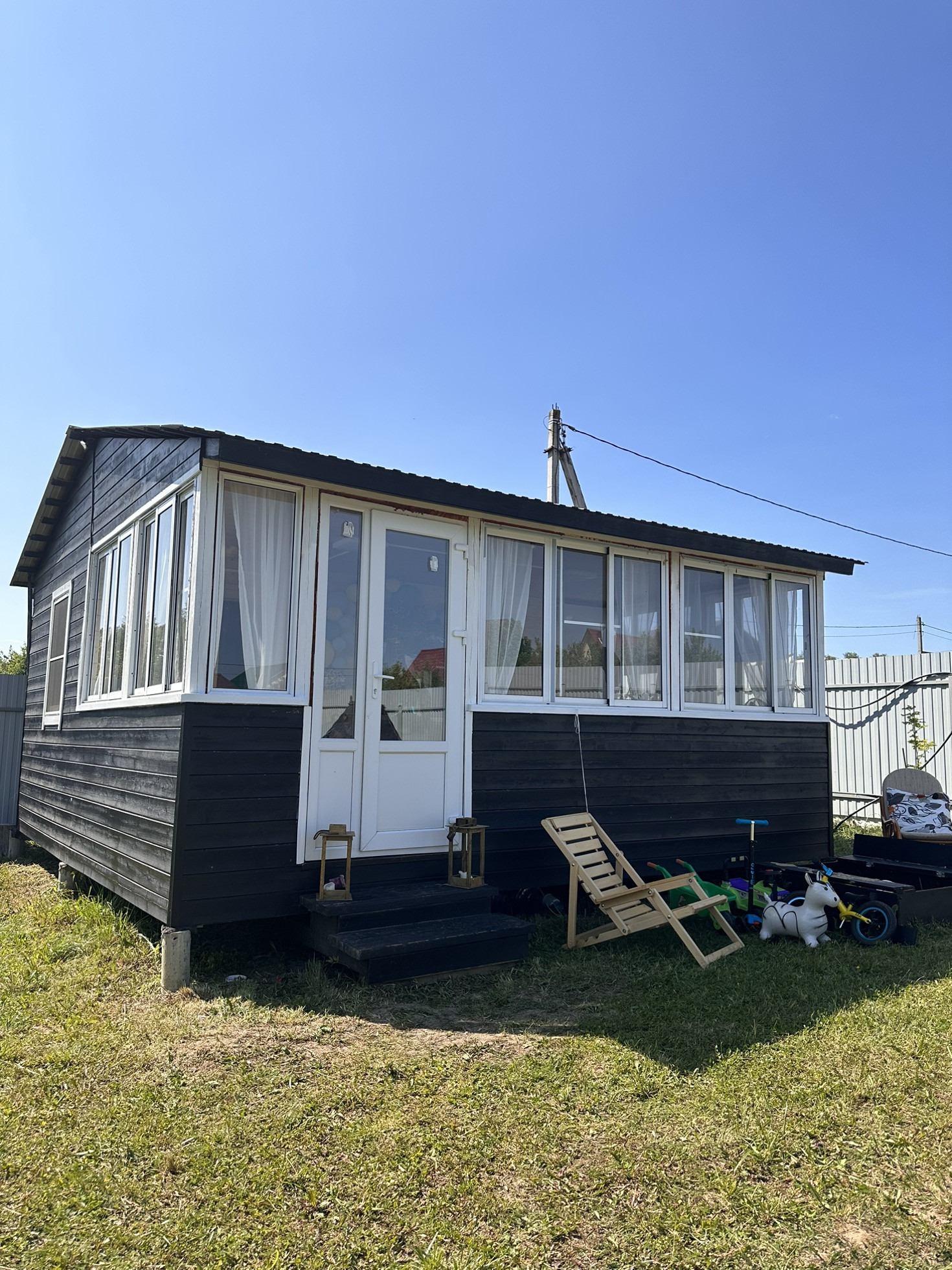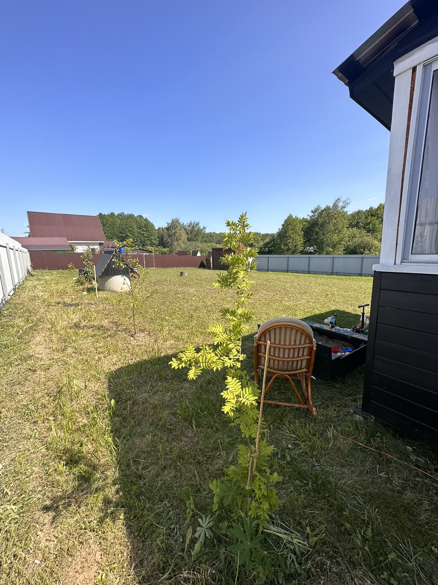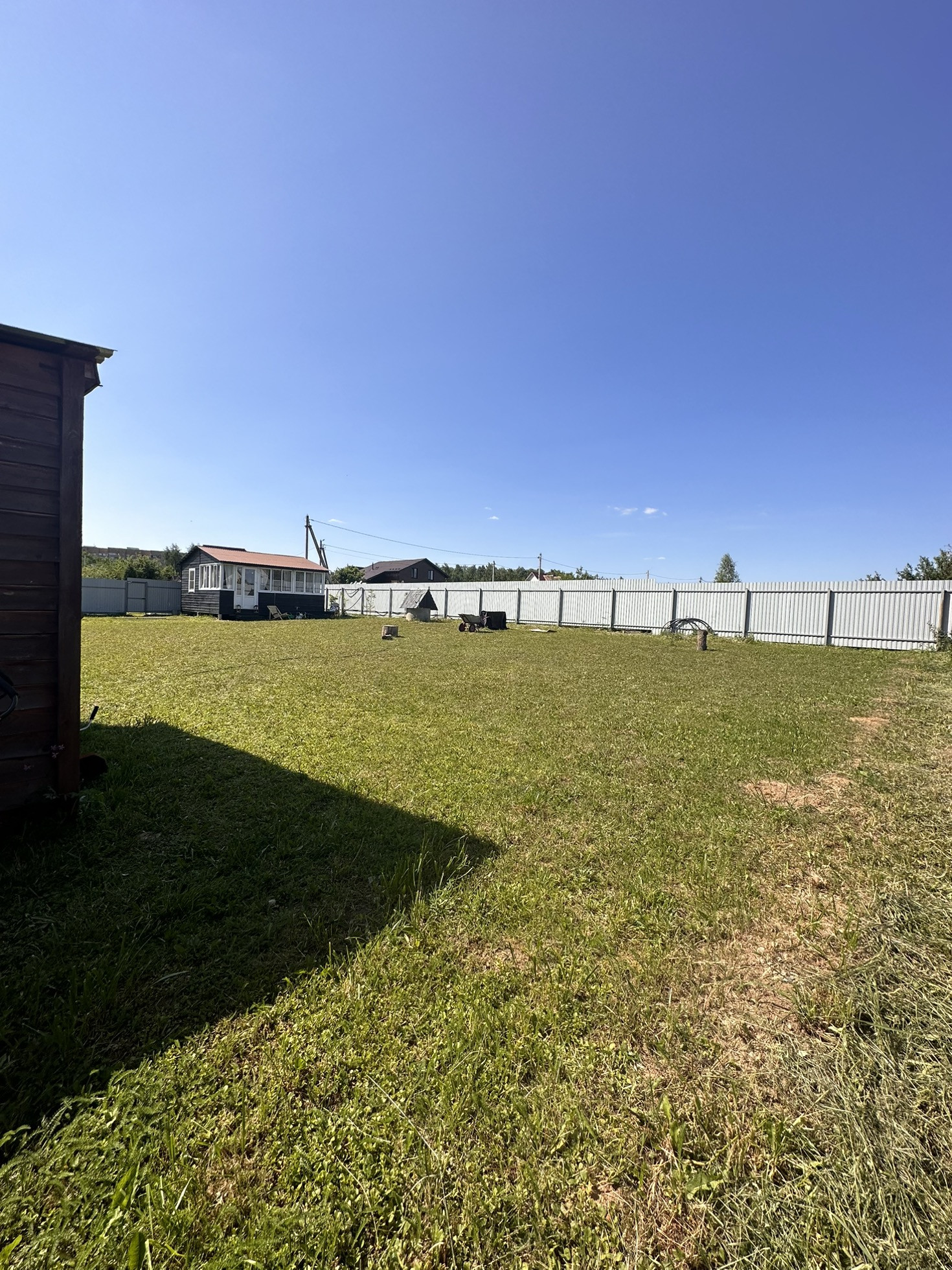 Имеется дренаж, забор, хозблок, колодец, электричество, туалет, летний домикс верандой 6 на 6, построенный 4 года назад, в домике горячая и холодная вода, утепленный. Пластиковые окна в комнате и на кухне, на веранде алюминиевые. Большая часть участка пустая, для постройки дома. Соседи с двух сторон, с третьей стороны лесополоса.