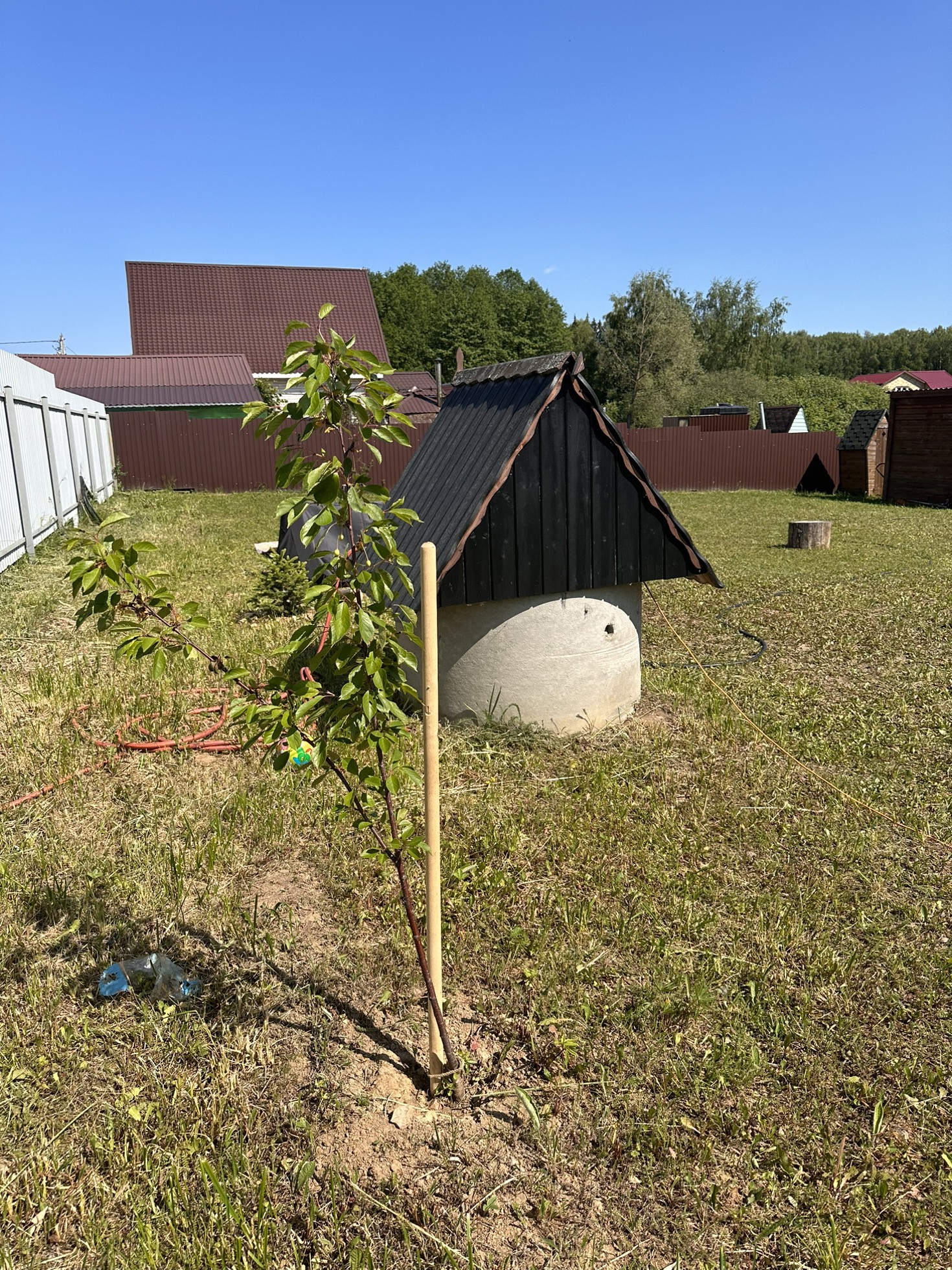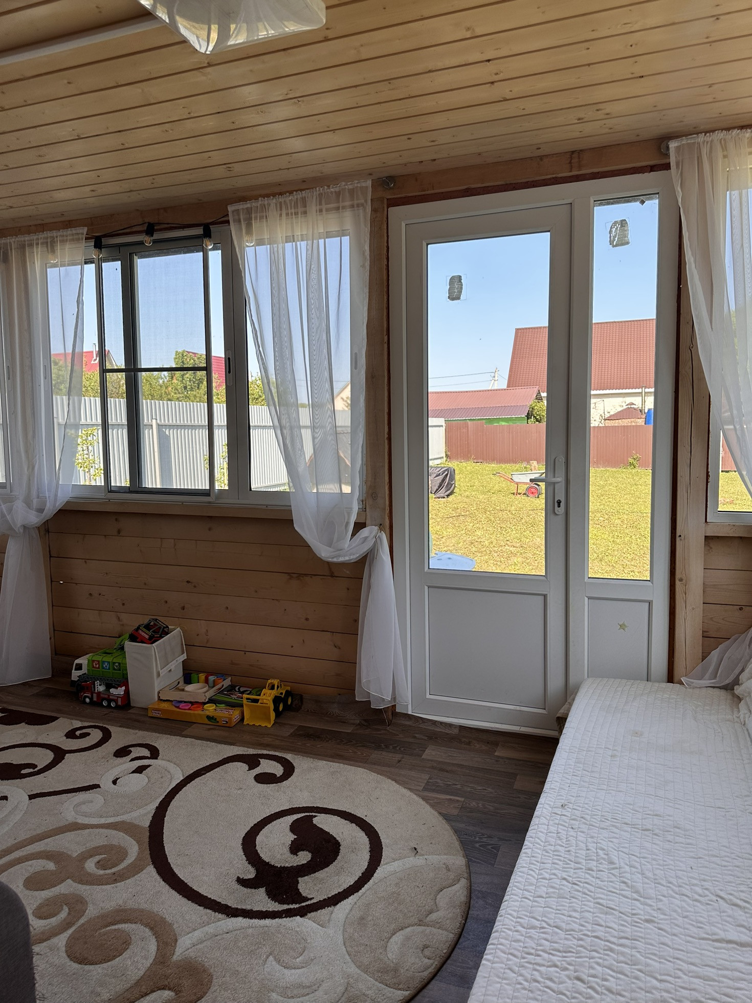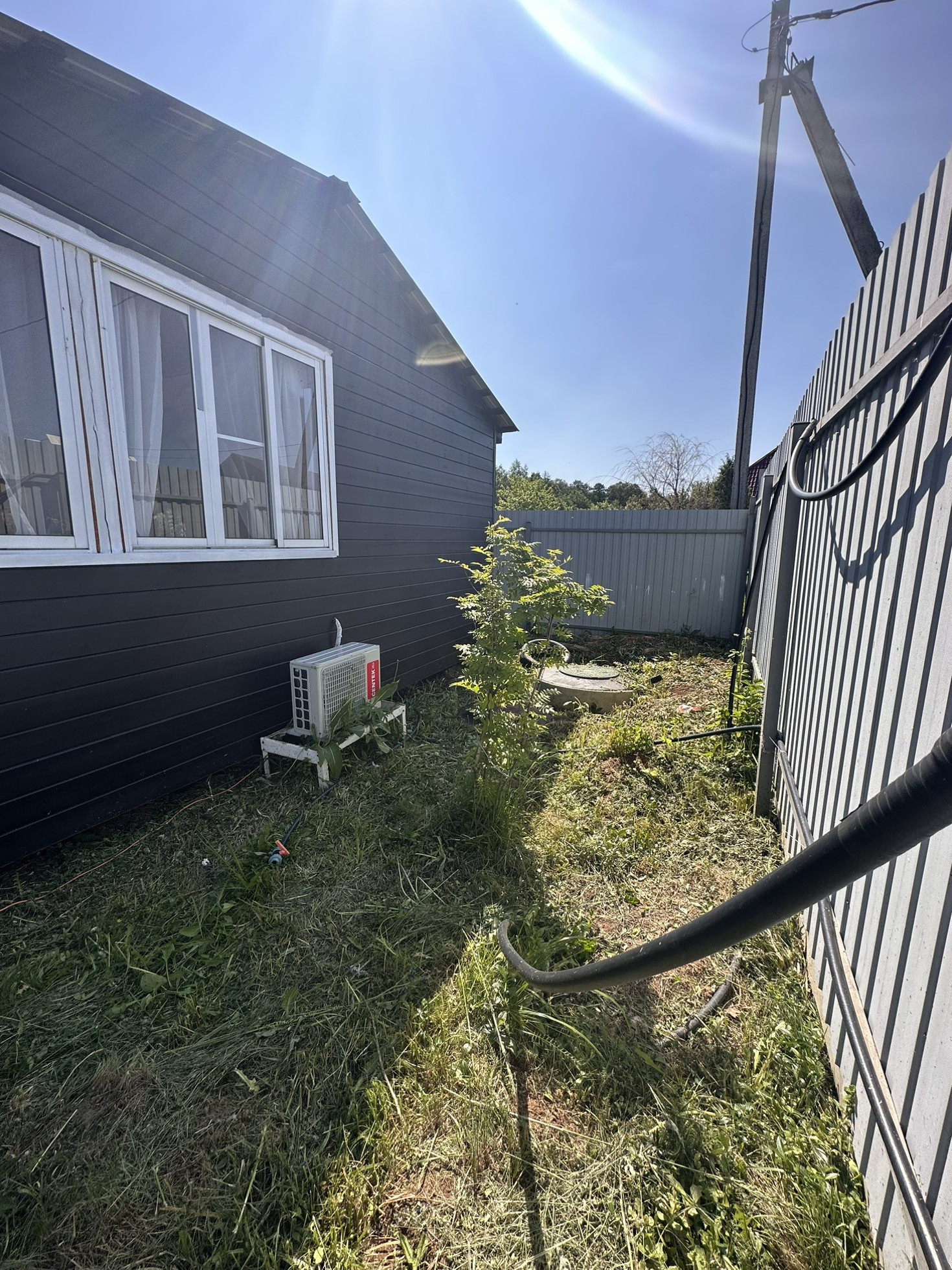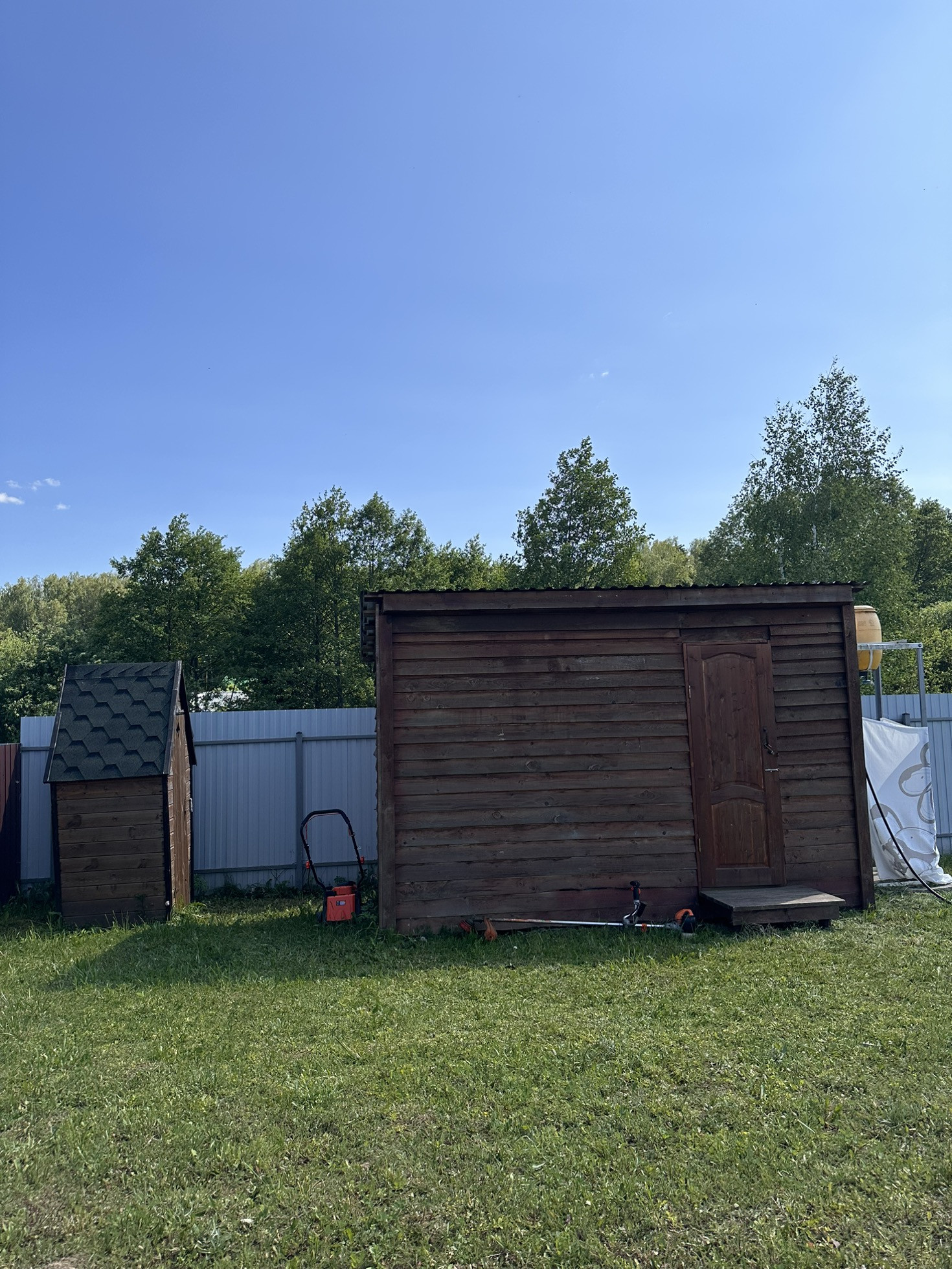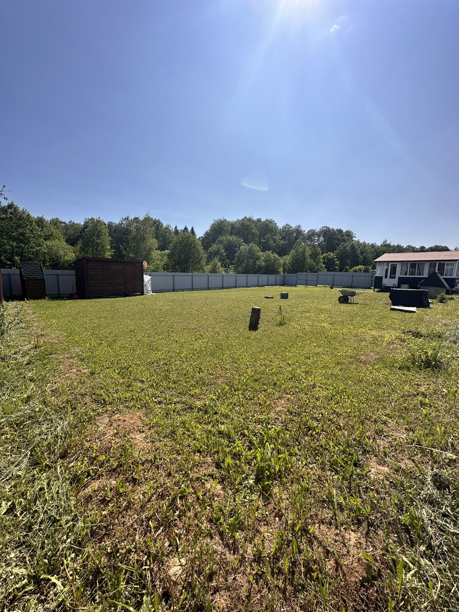 Имеется дренаж, забор, хозблок, колодец, электричество, туалет, летний домикс верандой 6 на 6, построенный 4 года назад, в домике горячая и холодная вода, утепленный. Пластиковые окна в комнате и на кухне, на веранде алюминиевые. Большая часть участка пустая, для постройки дома. Соседи с двух сторон, с третьей стороны лесополоса.