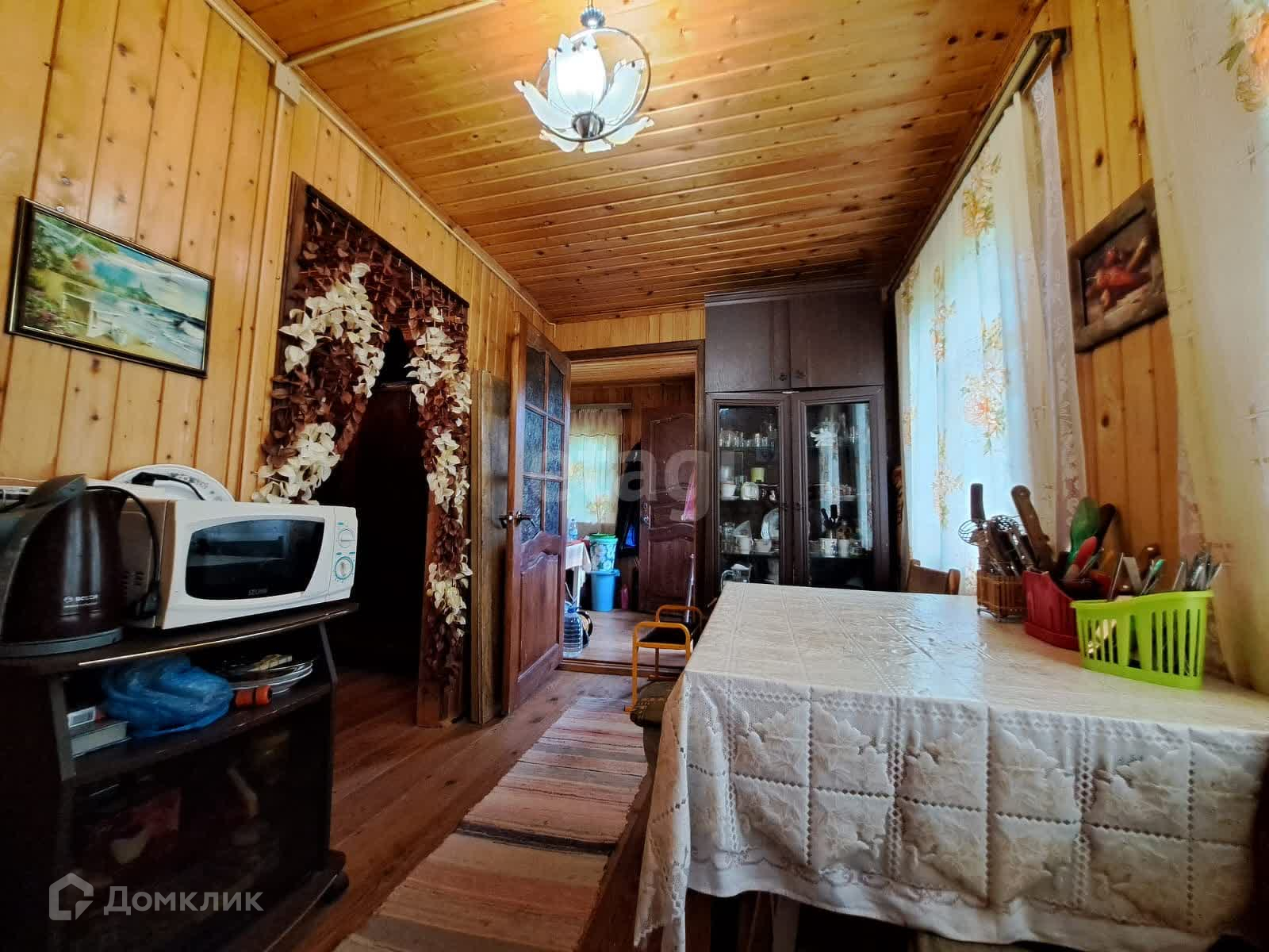 Дом каркасно-щитовой, внутри все комнаты отделаны вагонкой. Имеет две комнаты на первом этаже и одну на втором. Электричество заведено в дом. Вода – колодец на участке. Летний душ, туалет на улице.