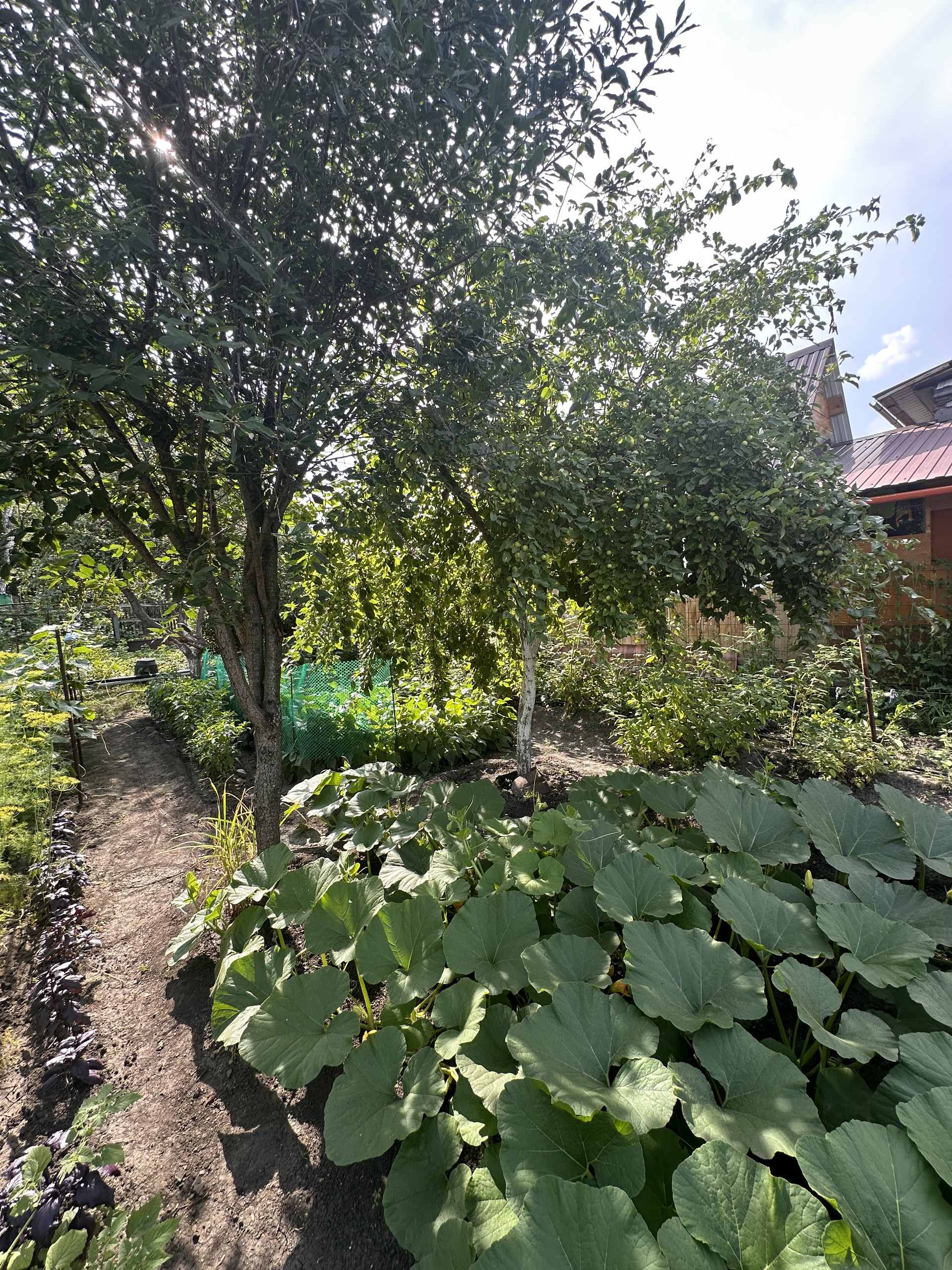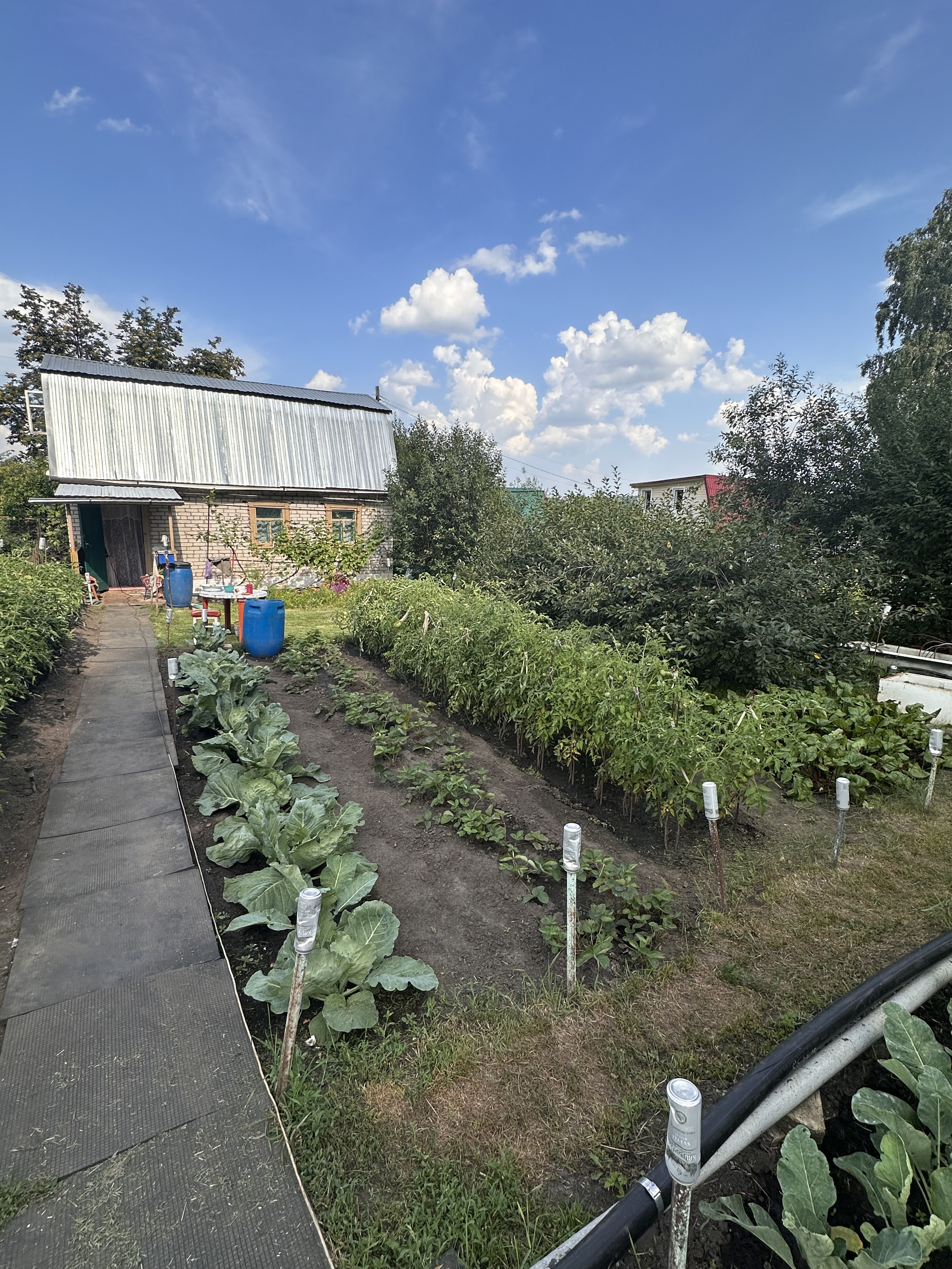Две зоны отдыха с газоном: одна в тени березовой рощи, приятная прохлада даже в самый жаркий день гарантирована, вторая – на солнце, для приёма солнечных ванн. Из посадок яблони, вишня, виноград, смородина красная и черная, клубника, малина, крыжовник и другие.