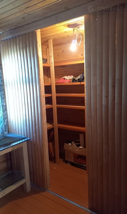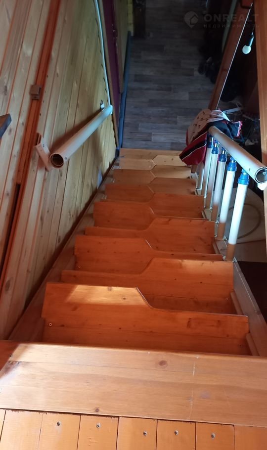 Изнутри обит вагонкой и снаружи сайдингом. Имеется   комната наверху, комната внизу, санузел, кухня, веранда, крыльцо.