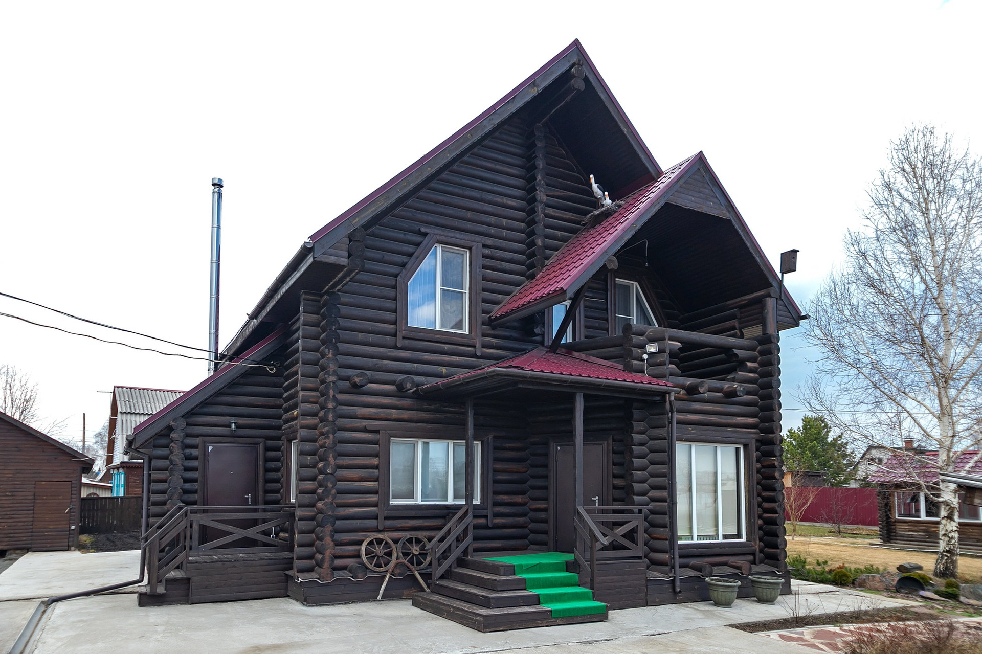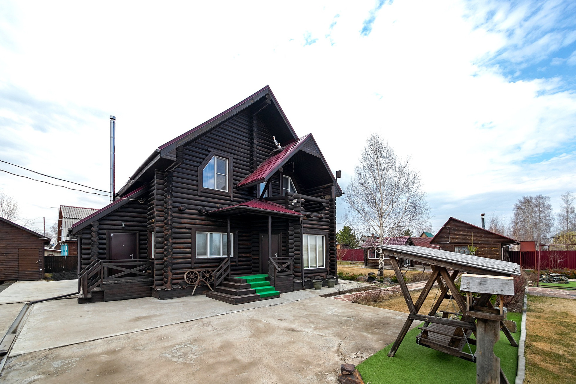 Дом бревенчатый в два этажа, устоявшийся. Фундамент - монолитная плита.