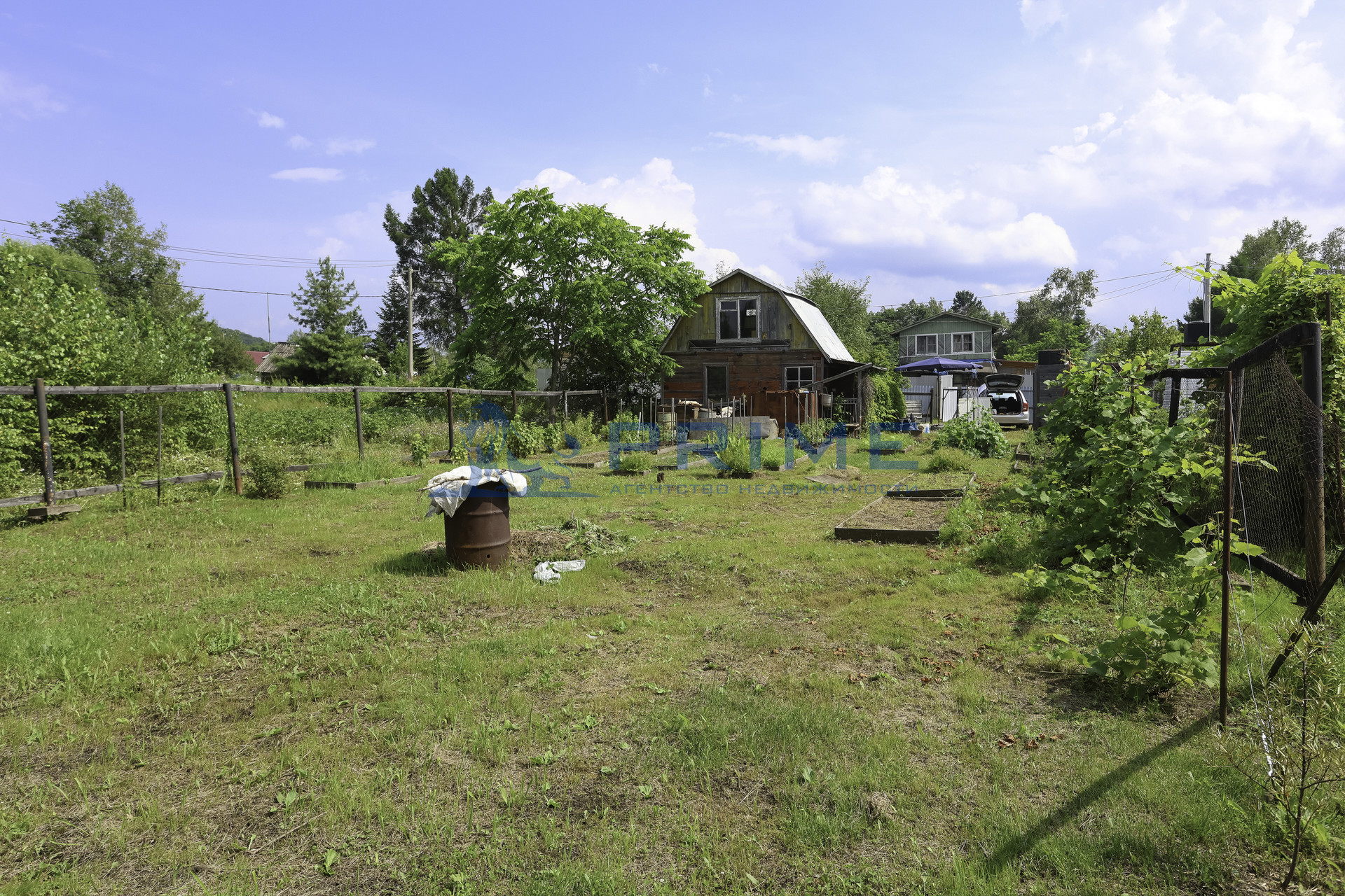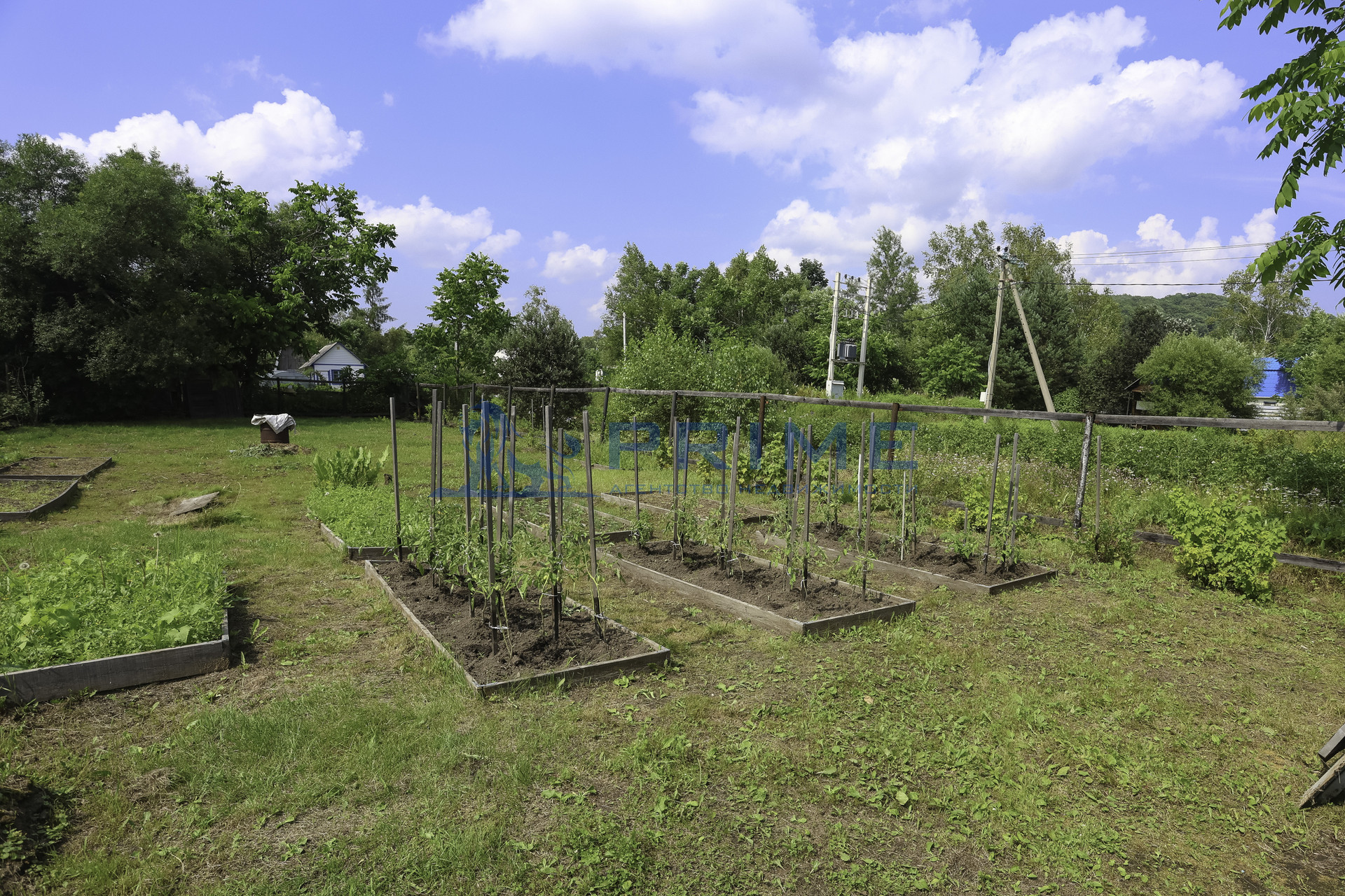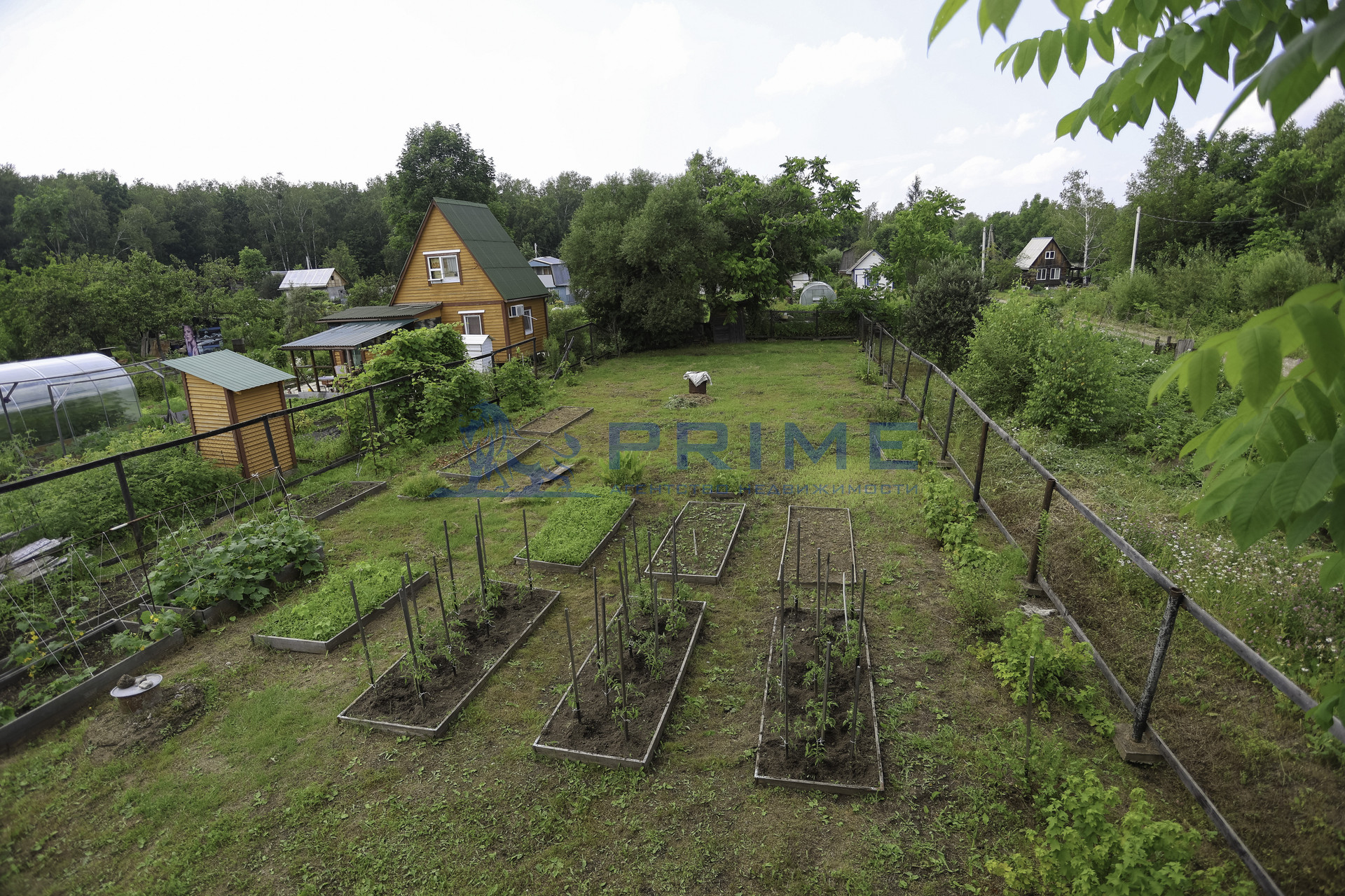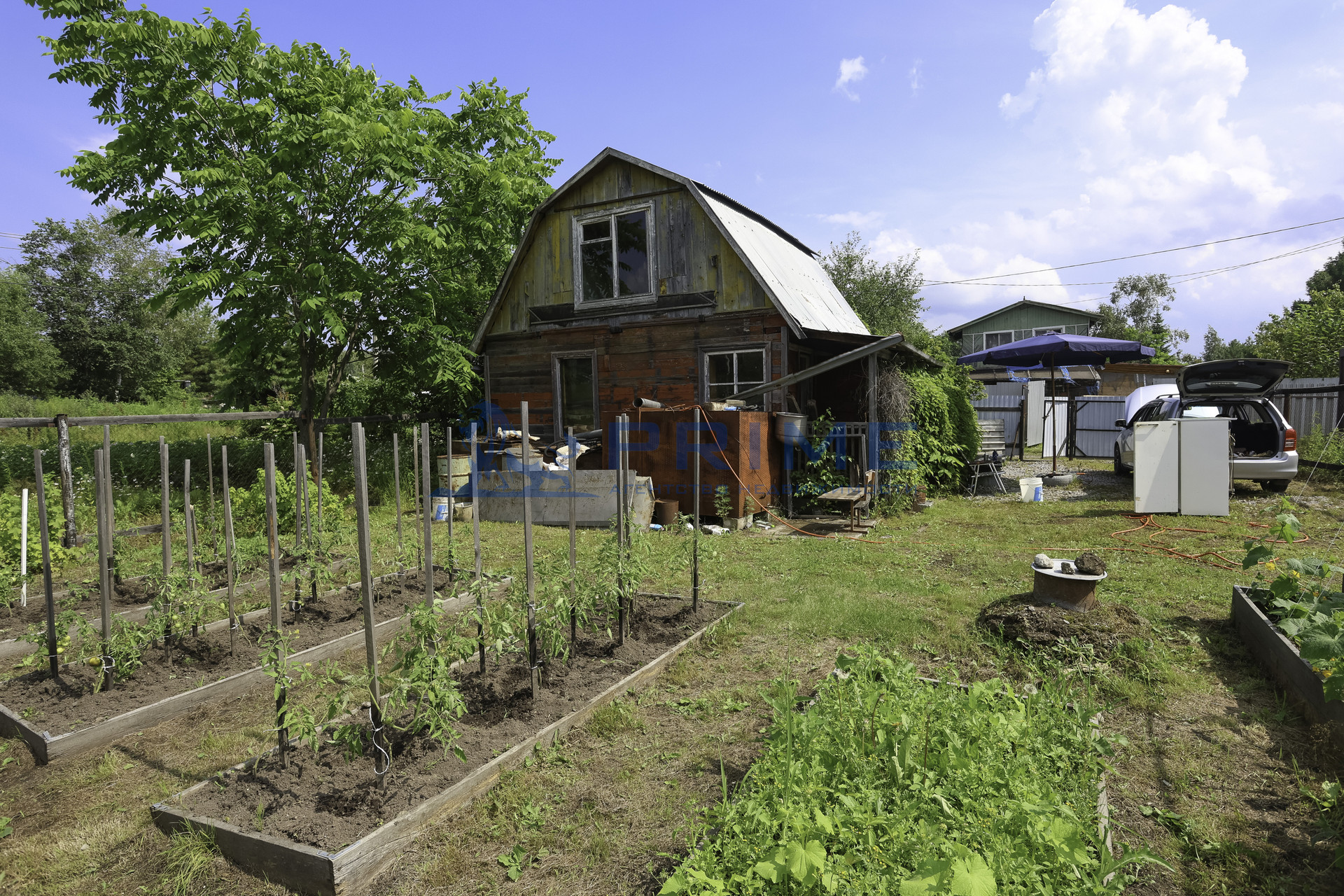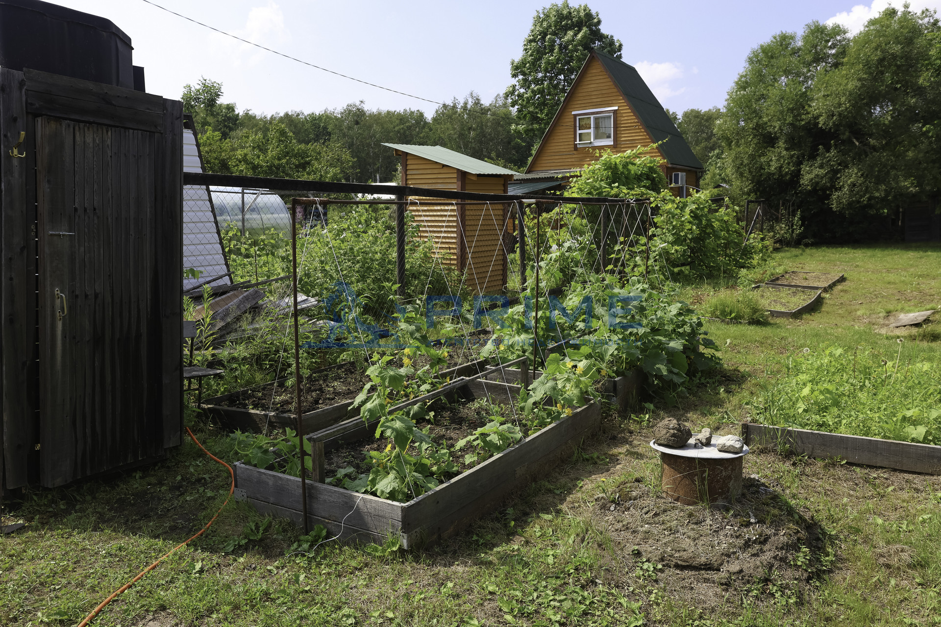 Устроены грядки, есть насаждения, участок ухоженный, со всех сторон огорожен забором, есть ворота для заезда автомобиля. На территории есть летний душ.