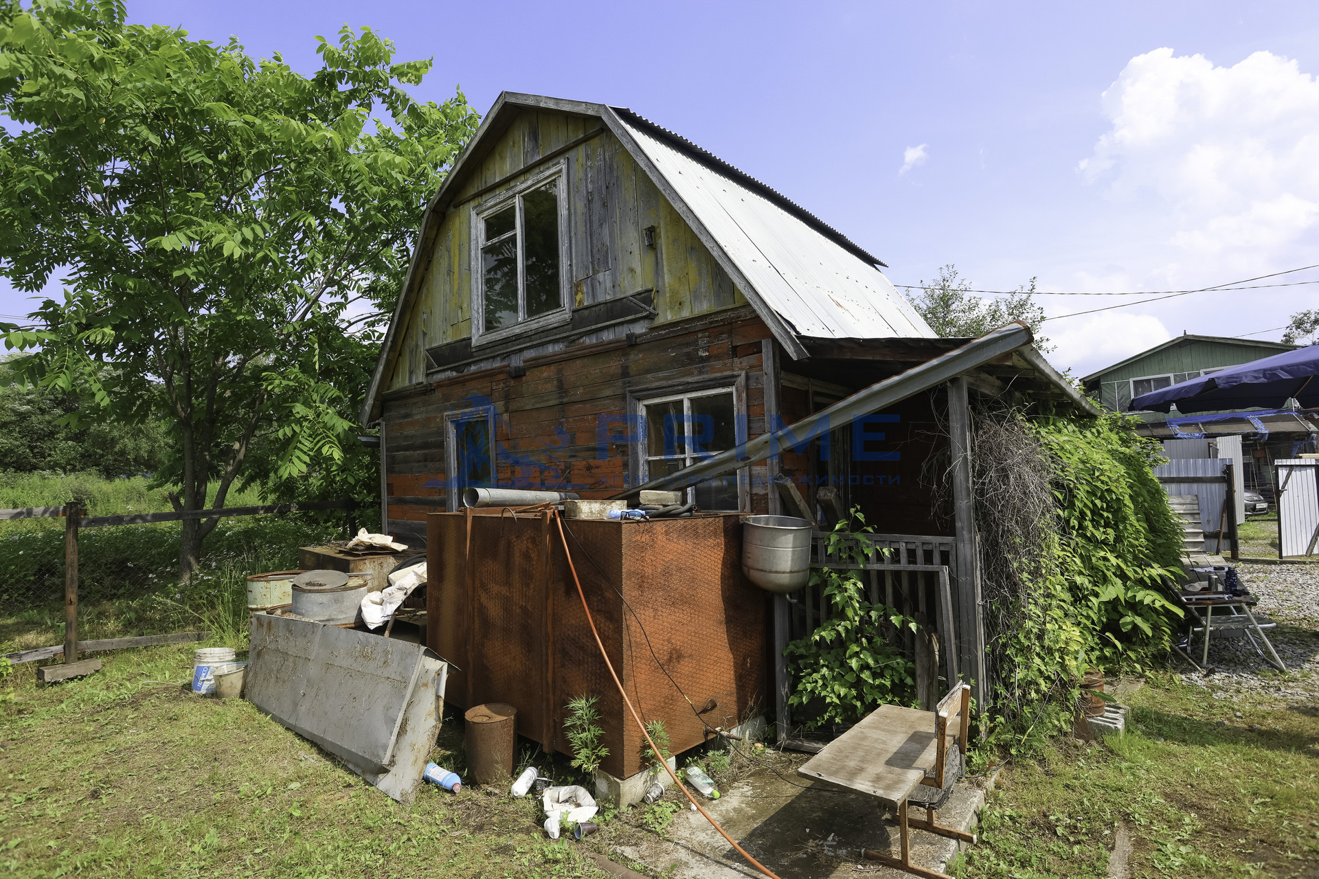 Участок 6 соток небольшим дачным домиком. На участок заведено электричество, есть скважина.