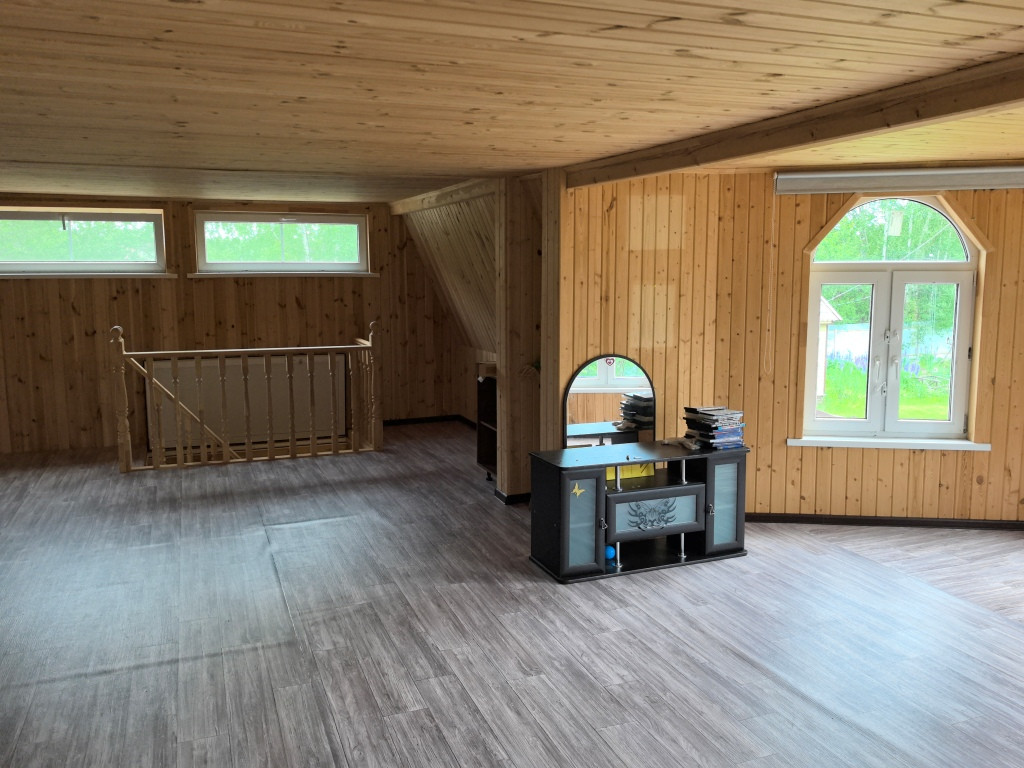 105 км от МКАД по Щёлковскому шоссе большая дача недалеко от Киржача у д. Полутино полностью готовая для постоянного проживания на участке площадью 24,5 сотки(три участка). Дом двухэтажный каркасник с утеплением 200 миллиметров(толщина стен 300 мм.)  на сваях. Внутри вагонка, снаружи имитация кирпича. Дом строился для большой семьи, жили круглогодично - на первом этаже 5 спален, прихожая, холл с лестницей и большая кухня гостиная. Санузел раздельный, котельная со всеми коммуникациями с выходом на участок. Отопление дублированное - стоит котел длительного горения на твёрдом топливе и газовый котёл запитанный от газгольдера(газгольдер на участке на 2 тонны, одной заправки хватает на два отопительных сезона). Скважина 67 метров с питьевой водой, на канализацию установлена биостанция "Топаз" - очистка воды 97 процентов, спокойно можно поливать огород. Трубы водяного отопления по всему первому этажу. Второй этаж на зиму закрывался и не отапливался, но выводы для необходимости предусмотрены. Второй этаж был отдан под детские игры и спорт, но при необходимости можно сделать несколько спален. На участке баня, сарай под технику садовую и гараж. Дом и участок зарегистрированы.