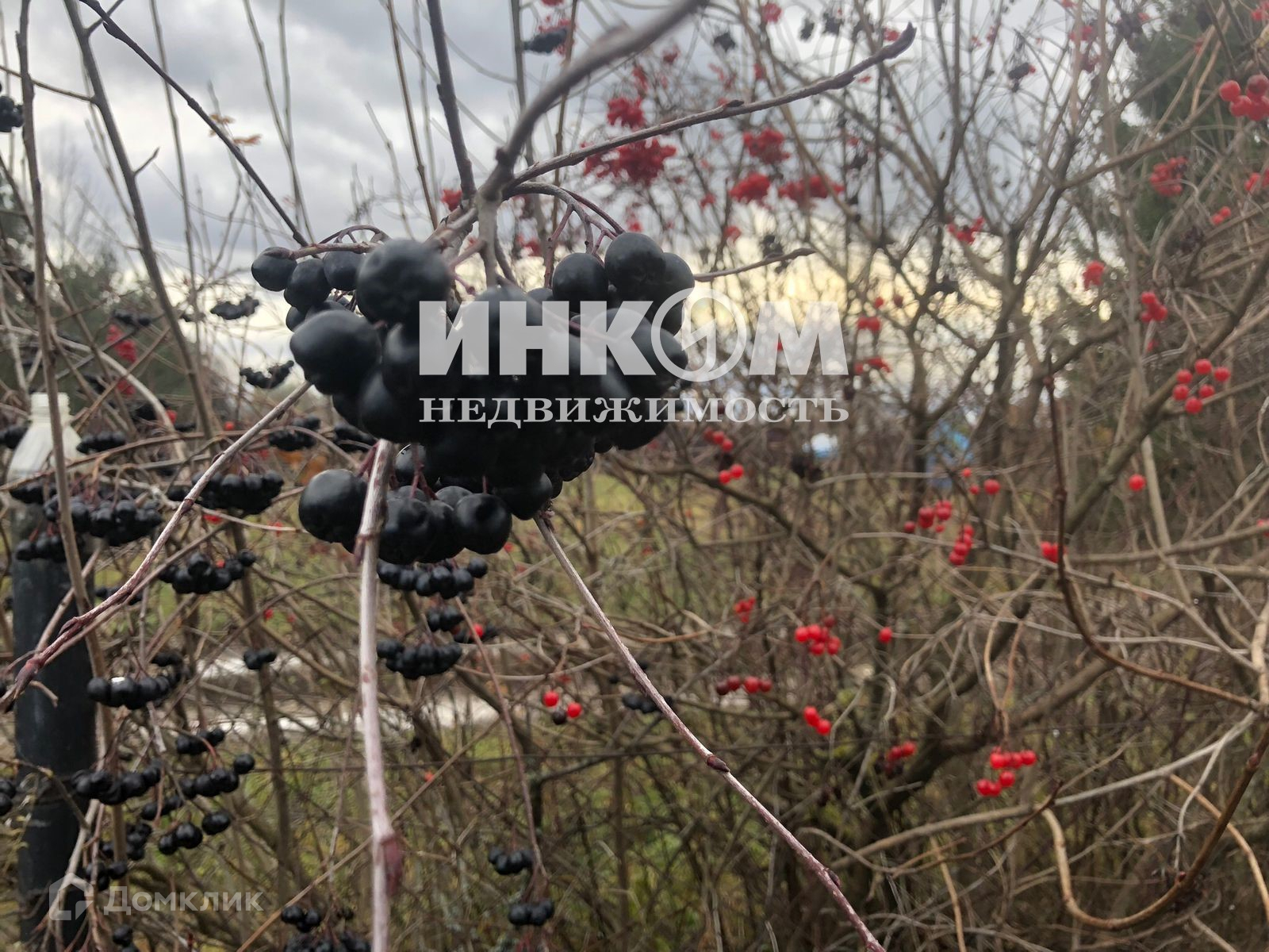 На участке много плодовых деревьев и кустарников.