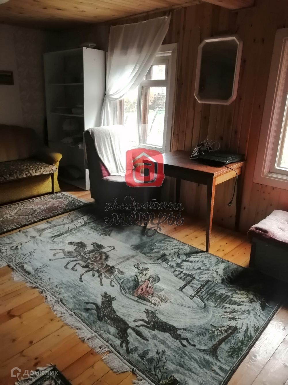 На участке расположен 2 этажный дом из лафета (отесанное бревно c 2 сторон).