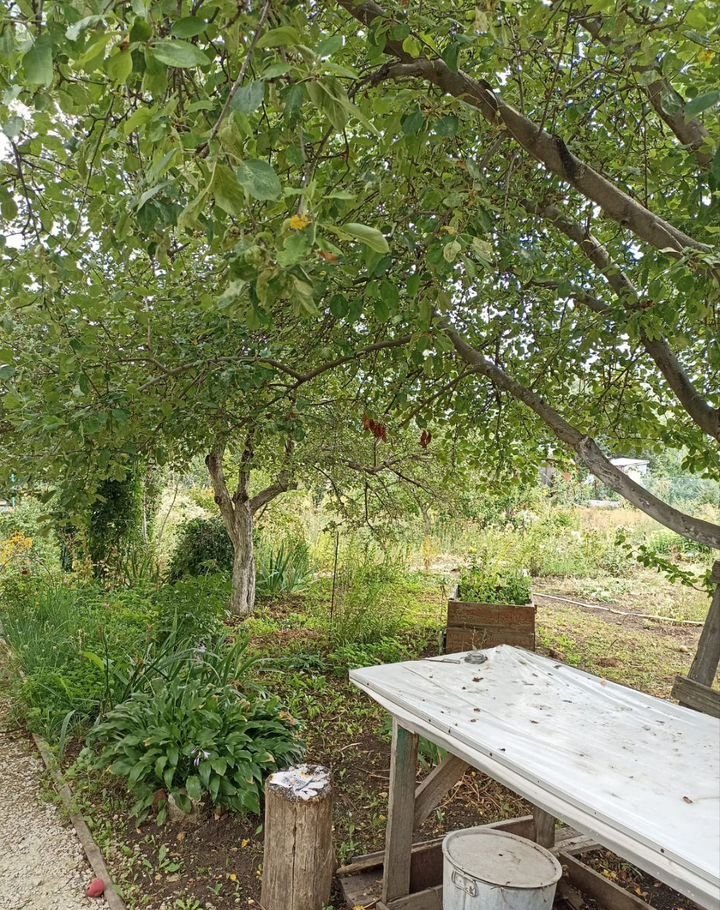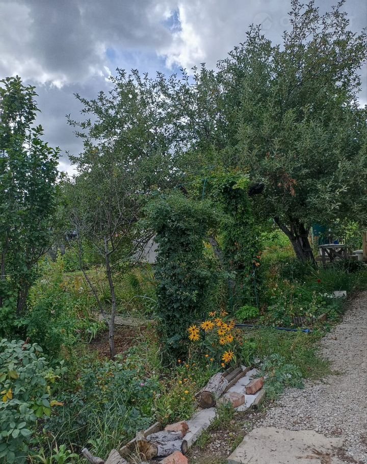 На участке высажены плодовые деревья, кустарники, ягоды : малина, клубника, ежевика, смородина, виноград, яблоня, груша, вишня, розы, пионы