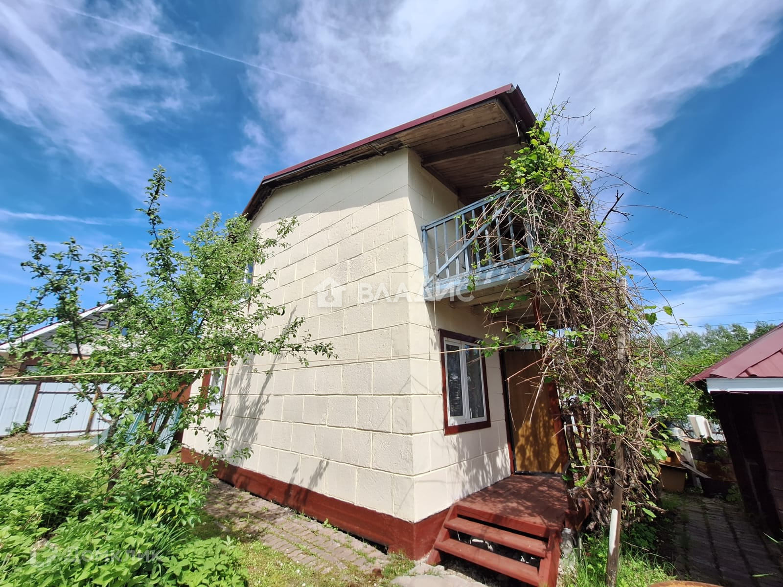 Дом на ленточном фундаменте, построен из блоков, крыша металлочерепица, внутри обшит вагонкой и отделан кирпичом. Есть погреб для хранения припасов.