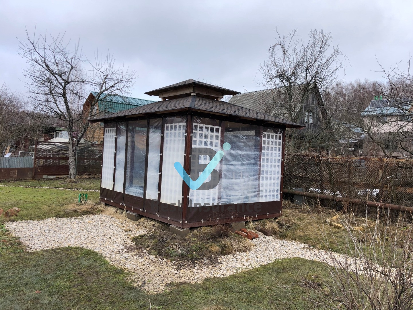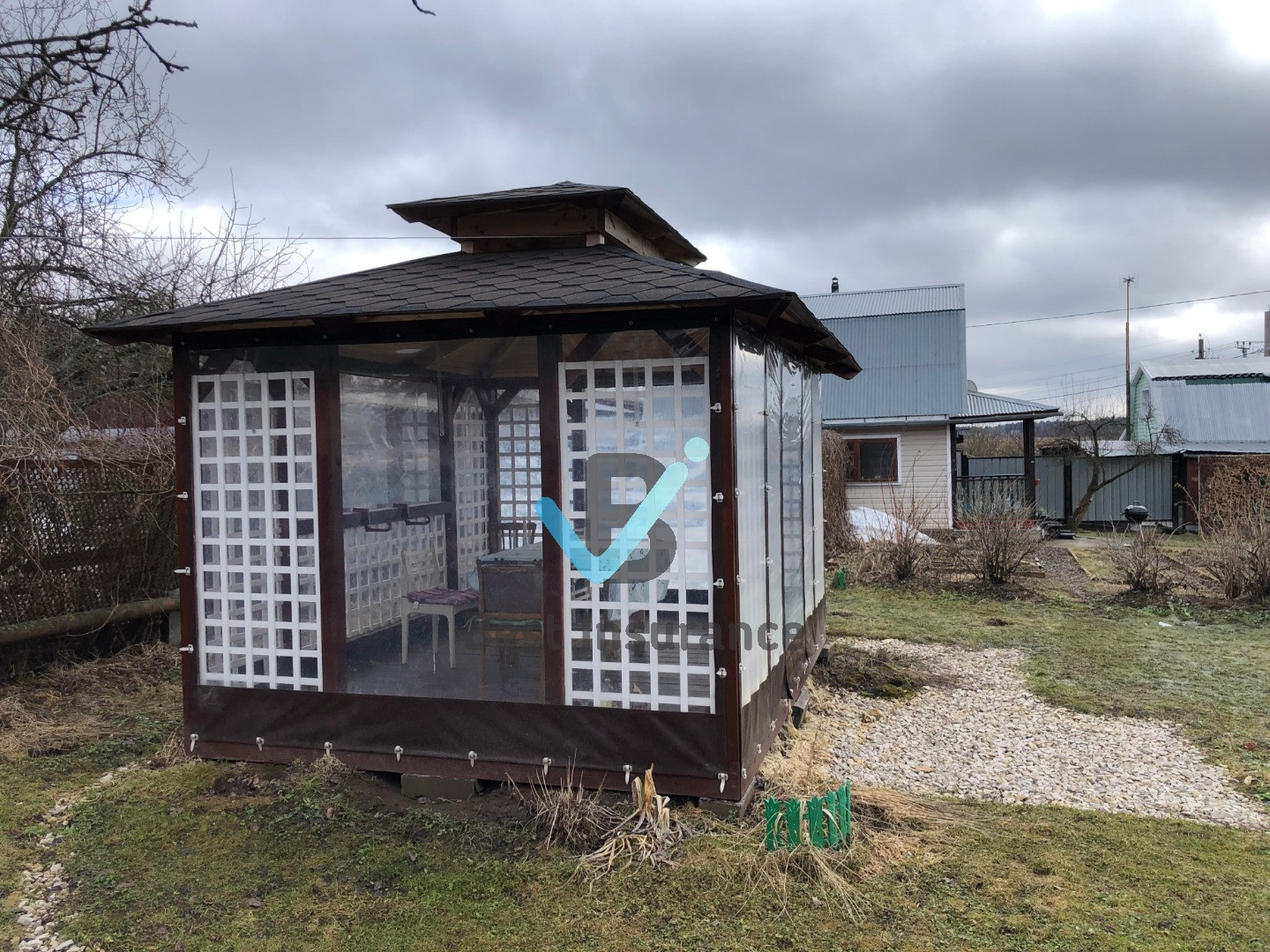 УЧАСТОК 10,3 сотки  - Практически крайний с потрясающим панорамным видом на подмосковные просторы!  Земли сельскохозяйственного назначения для садоводства.  Дорога до участка асфальтная крошка., зимой чиститься постоянно так как соседи живут круглогодично! Форма участка правильная.. Беседка в китайском стиле, закрыта жидким (мягким) стеклом. . Ограждение участка профнастил евроштакетник.. Металлические  ворота., Стоянка для авто под навесом.   Дренажная система по всему участку.