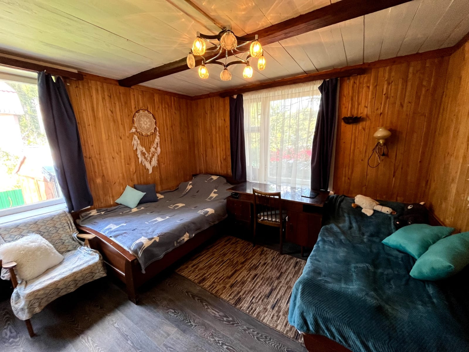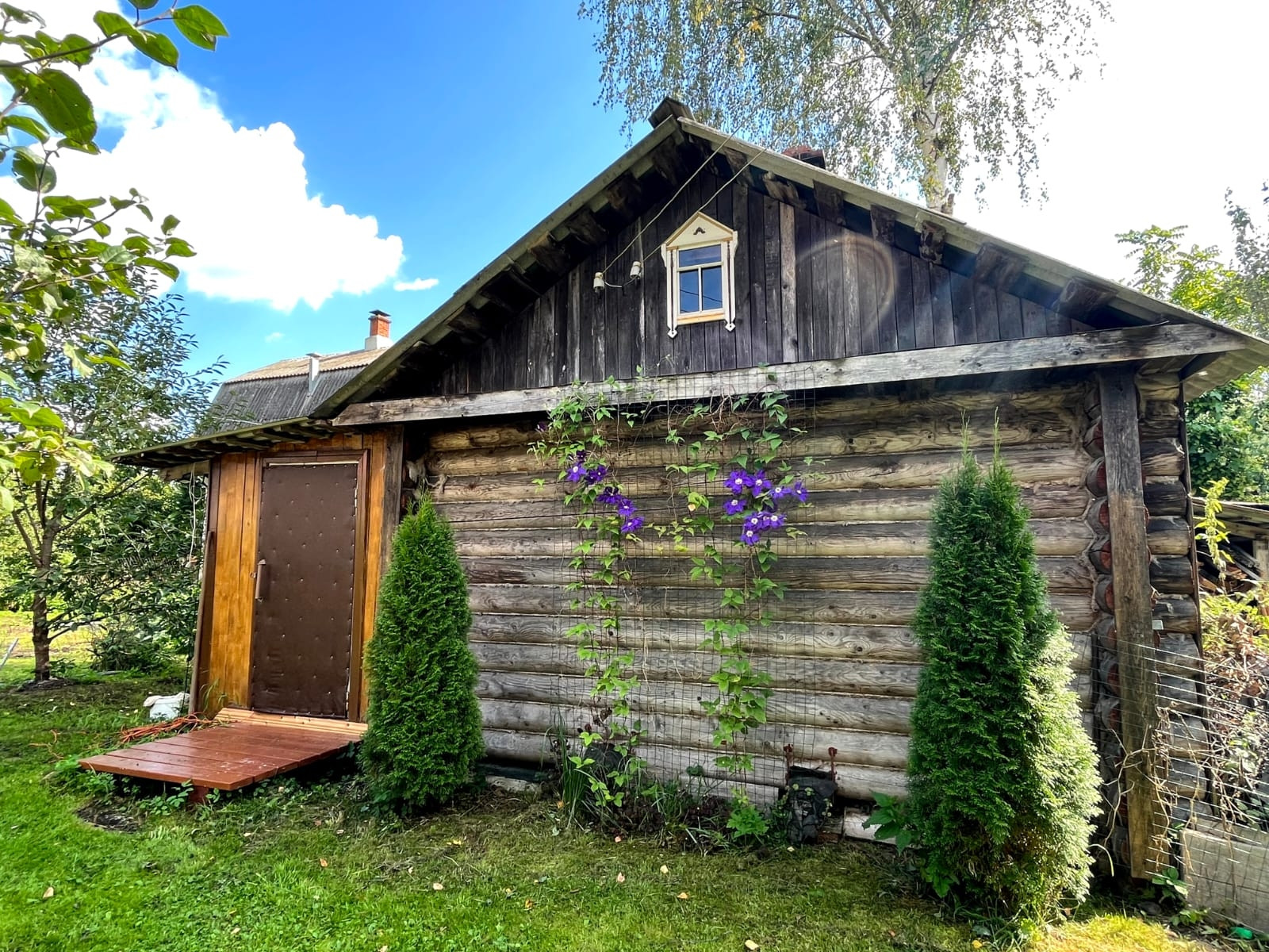Продаем любимую дачу. Полностью готова к проживанию, не заброшена, ухожена, после ремонта. На участке (6 соток зарегистрировано, но по факту имеется 7,5 соток и они неотъемлемы) есть четыре строения - дом сруб+каркас (74,3 м кв - три комнаты 16,14,,11 кв м, кухня-гостиная 21 кв м, санузел, хоз комната, русская печь, камин), русская баня сруб (29,7 кв м, парная, моечная, гостиная 14 кв м с печью-лежанкой, веранда хозяйственная) , гостевой дом/хозблок/мастерская(комната+мастерская+летний туалет), гараж (18 м кв). У дома есть открытая уютная веранда. Строения расположены в шахматном порядке, что создаёт уют на территории. Гостевой дом также обустроен как домик хозяина с мастерской, комнатой отдыха/кабинетом с музыкой, кинотеатром и прочими интересными моментами. Установлен септик. Водопровод летний (работа апрель-октябрь). Сделан масштабный ремонт, делали для себя, полностью перестроена кухня-гостиная, полностью отремонтированы веранды в бане и в доме, установлены стеклопакеты, заменены водопроводные трубы, отремонтированы печи и камин, работают отлично, сделана новая парная, проведен прочий внешний и внутренний ремонт всех помещений. Дача находится в тихом месте, рядом с лесом и небольшой лесной речкой, выход рядом, воздух чистейший. Соседи по сути только одни. Соседи хорошие, въезд в СНТ через автоматические ворота, до СНТ отличная асфальтированная дорога, зимой чистится, в СНТ чистится центральная линия. В пешей доступности два магазина. Приезжают фермеры со своей продукцией. До Дмитрова 15 мин на машине или можно на автобусе (остановка в 800 метрах). Также в пешей доступности озеро/пруд, где можно купаться и рыбачить. В 3 км по хорошей дороге (велосипед, машина) расположен канал им Москвы, где можно также купаться и рыбачить. Вокруг лес, грибы и ягоды. До жд станции Орудьево 4 км, ездят местное такси. Также по пути на жд станцию есть хороший рынок и магазины, можно на машине/велосипеде, дорога асфальтирована. На участке плодовые деревья и кустарники, туи, розы и прочие насаждения. Звоните, пишите, всё расскажем и покажем.Собствнник один. Продаёт собственник. ТОРГ возможен! В услугах риелторов не нуждаемся!!!