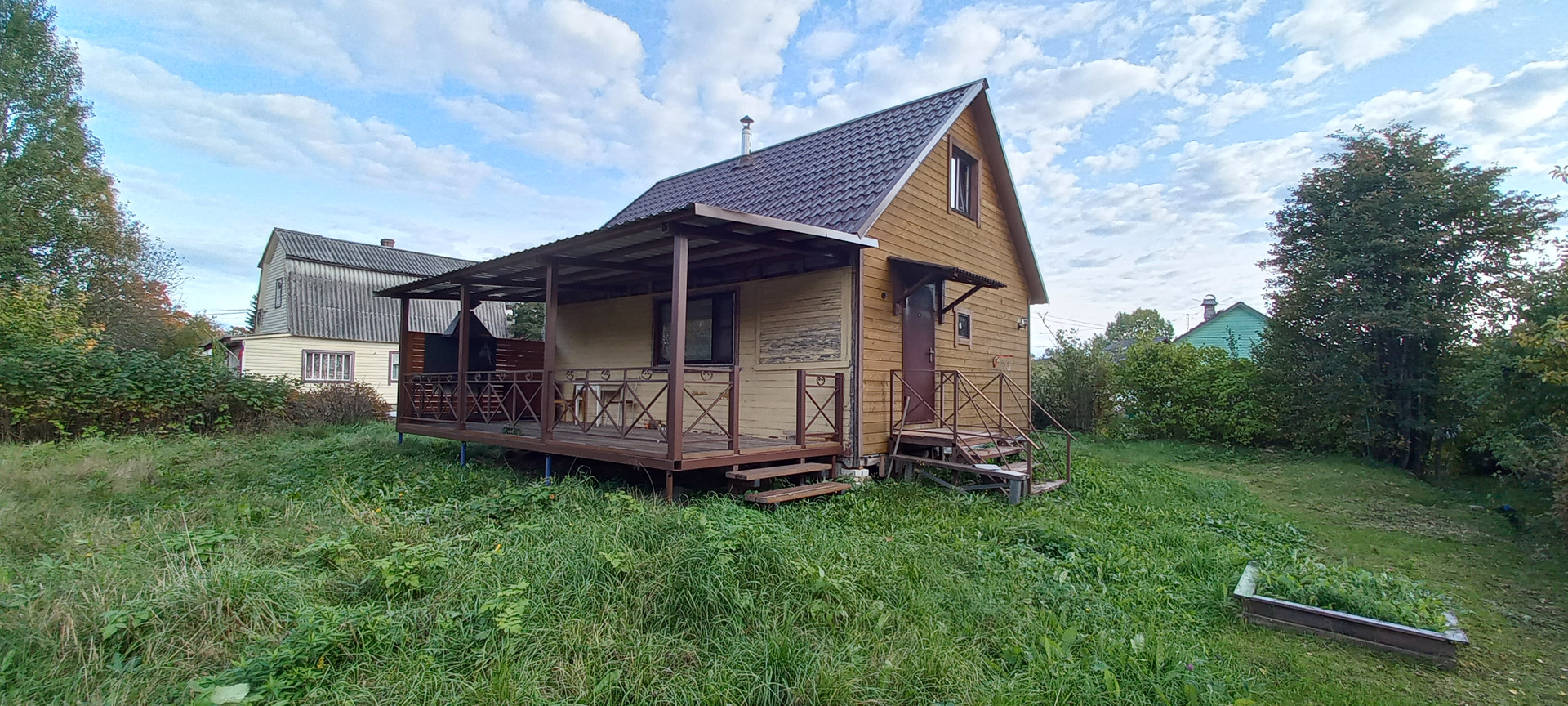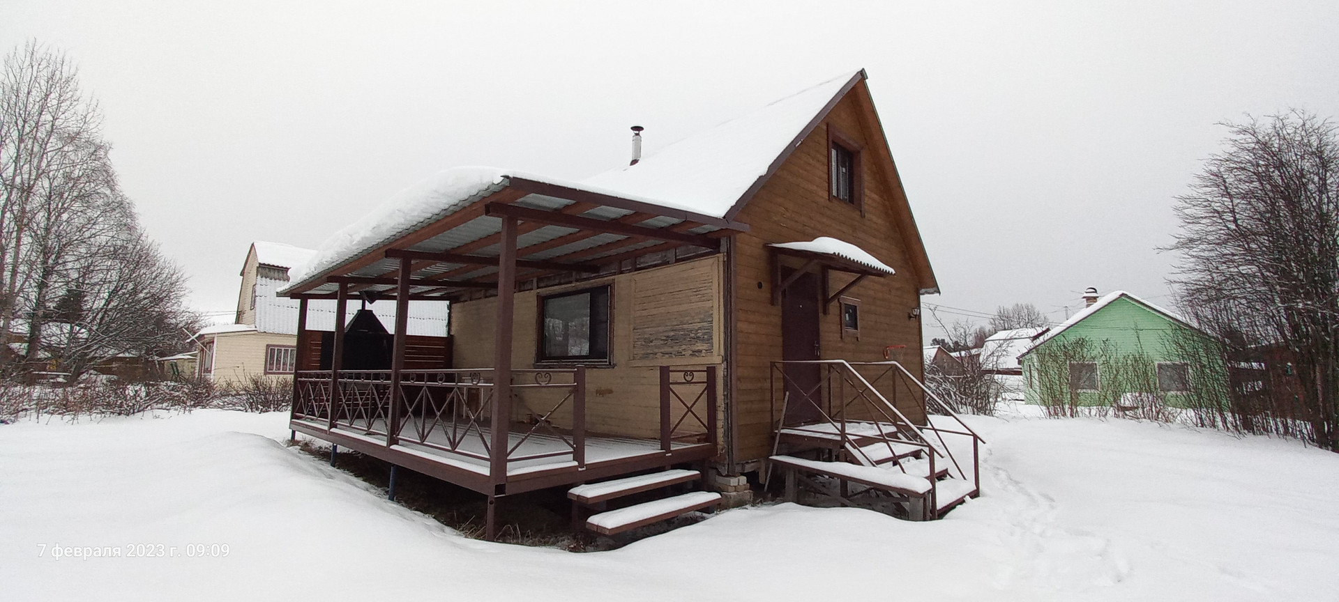 Дом 8 х 6 метров. Открытая терраса на сваях  3 х 7.5 метров.