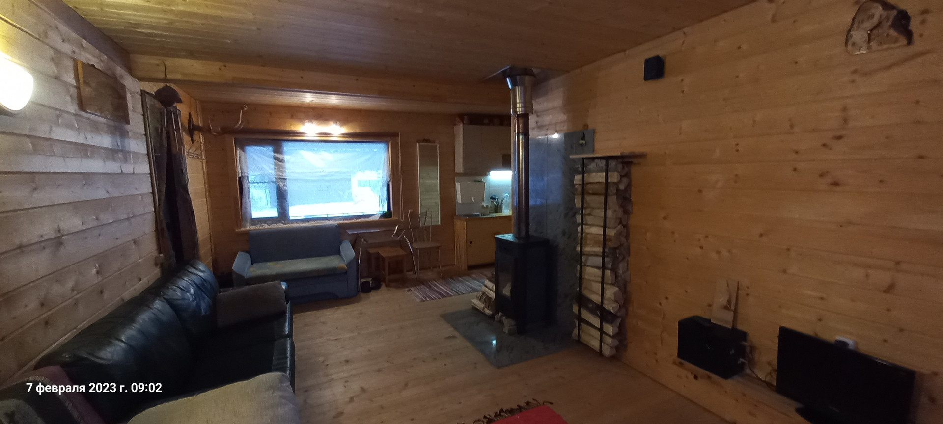 1 этаж – кухня – гостиная и спальня.