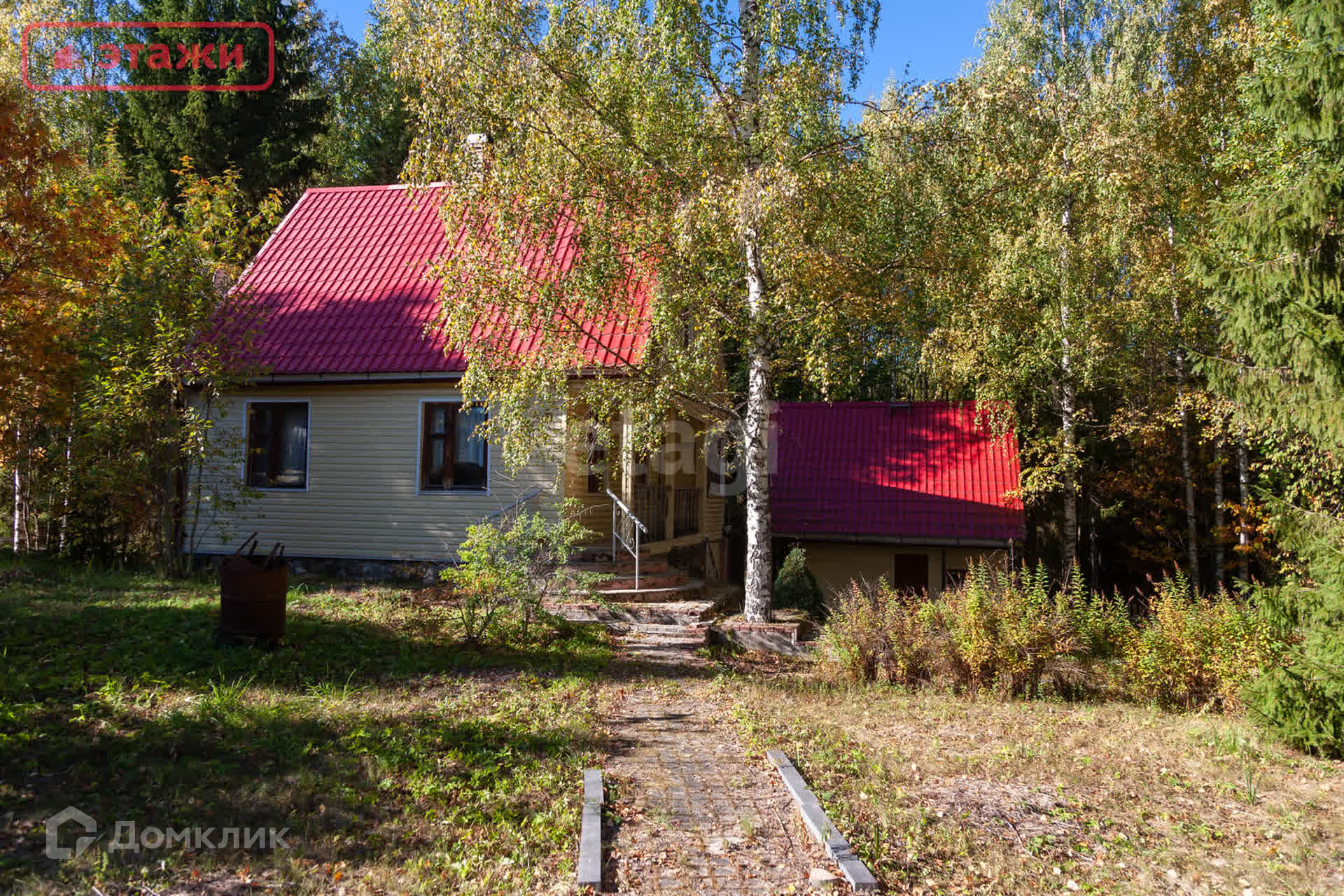 Стены: брус 150мм с наружным утеплением 50мм, металлический сайдинг.