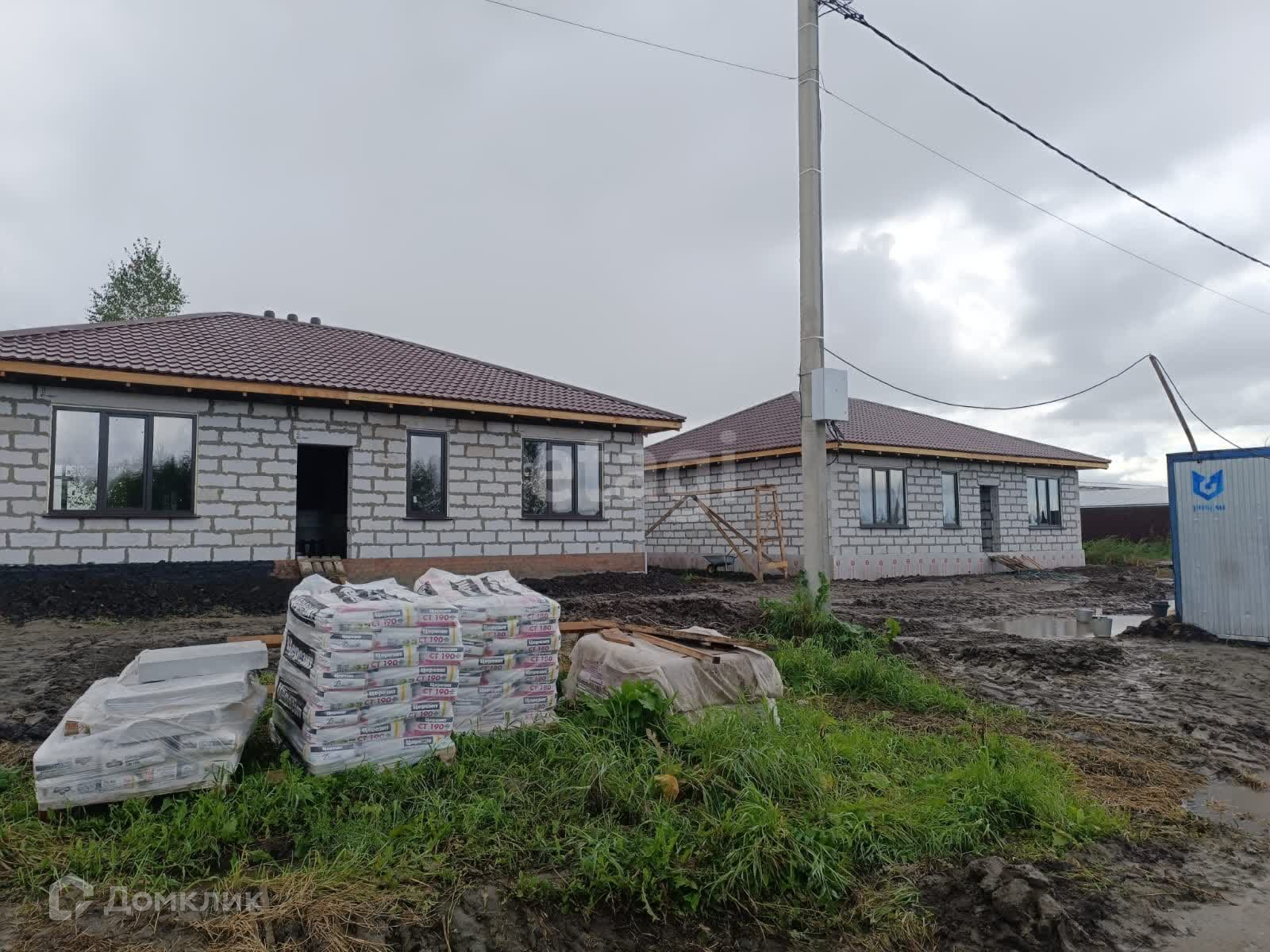 Фундамент ленточный вентилируемый, плиты перекрытия железобетонные, цоколь из кирпича, стены из газоблока фирмы Сибит, утепление стен каменной ватой, штукатурка фасадная декоративная, крыша Металлочерепица фирмы Металл Профиль, окна кашированные, входная дверь теплая с термо разрывом.