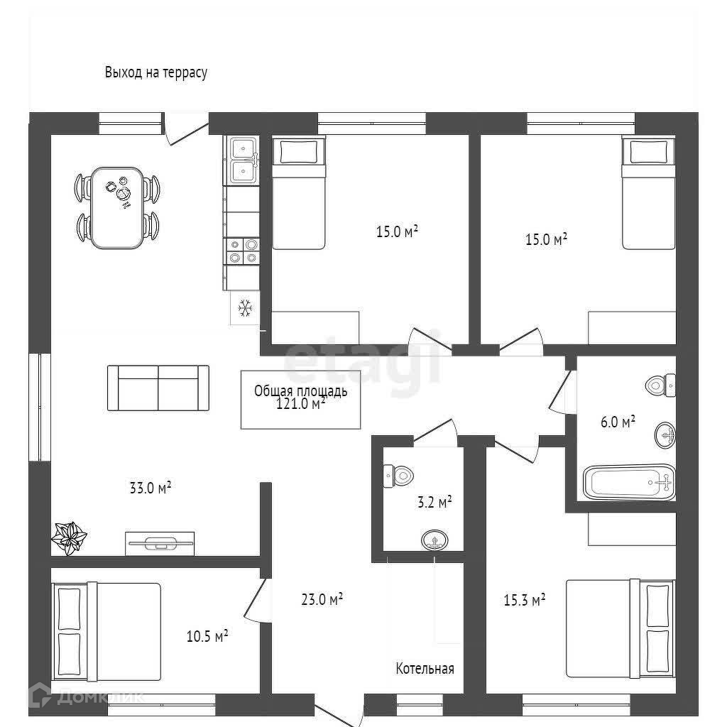 Общая площадь 121 м2