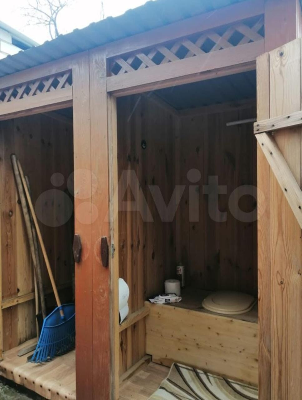 дровник, теплица большая на фундаменте, туалет с хозблоком новый, душ уличный,Основание для металлического хоз блока осталось обшить профнастилом,