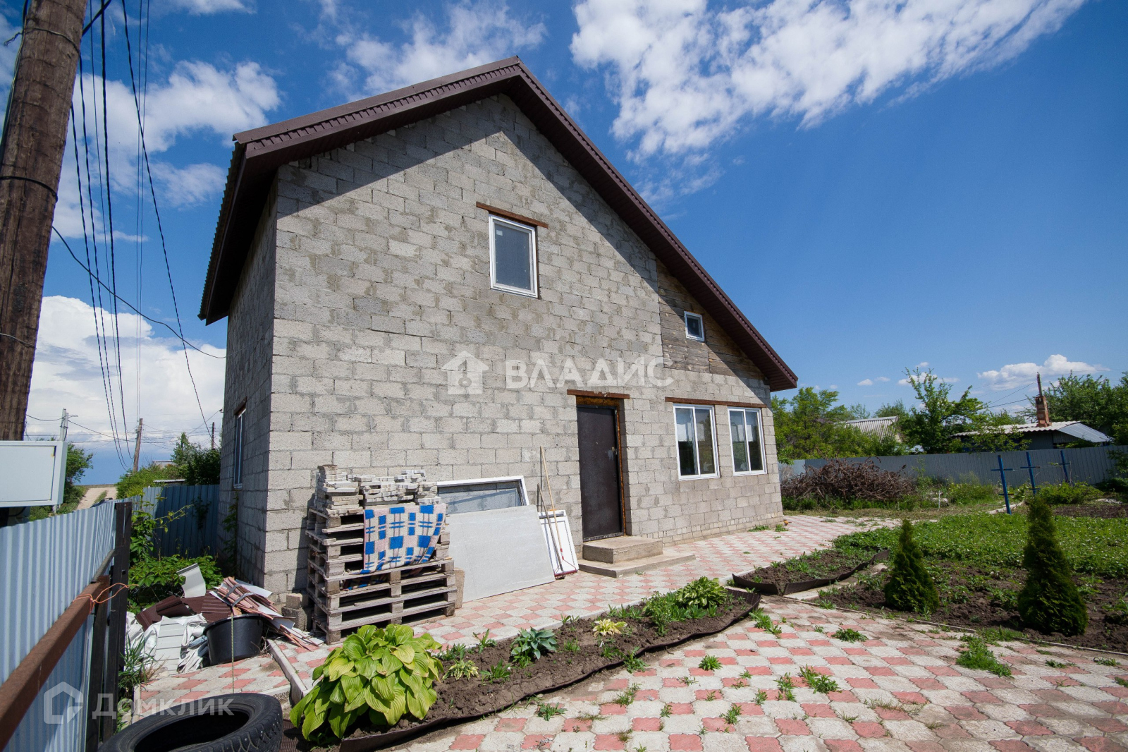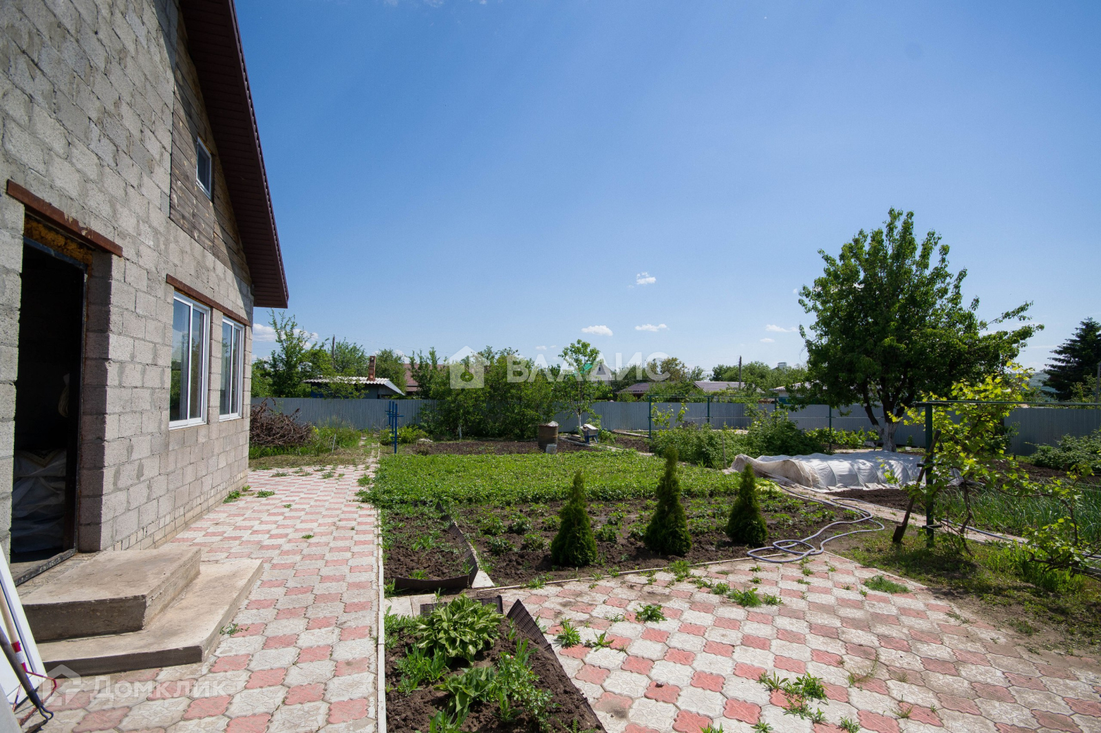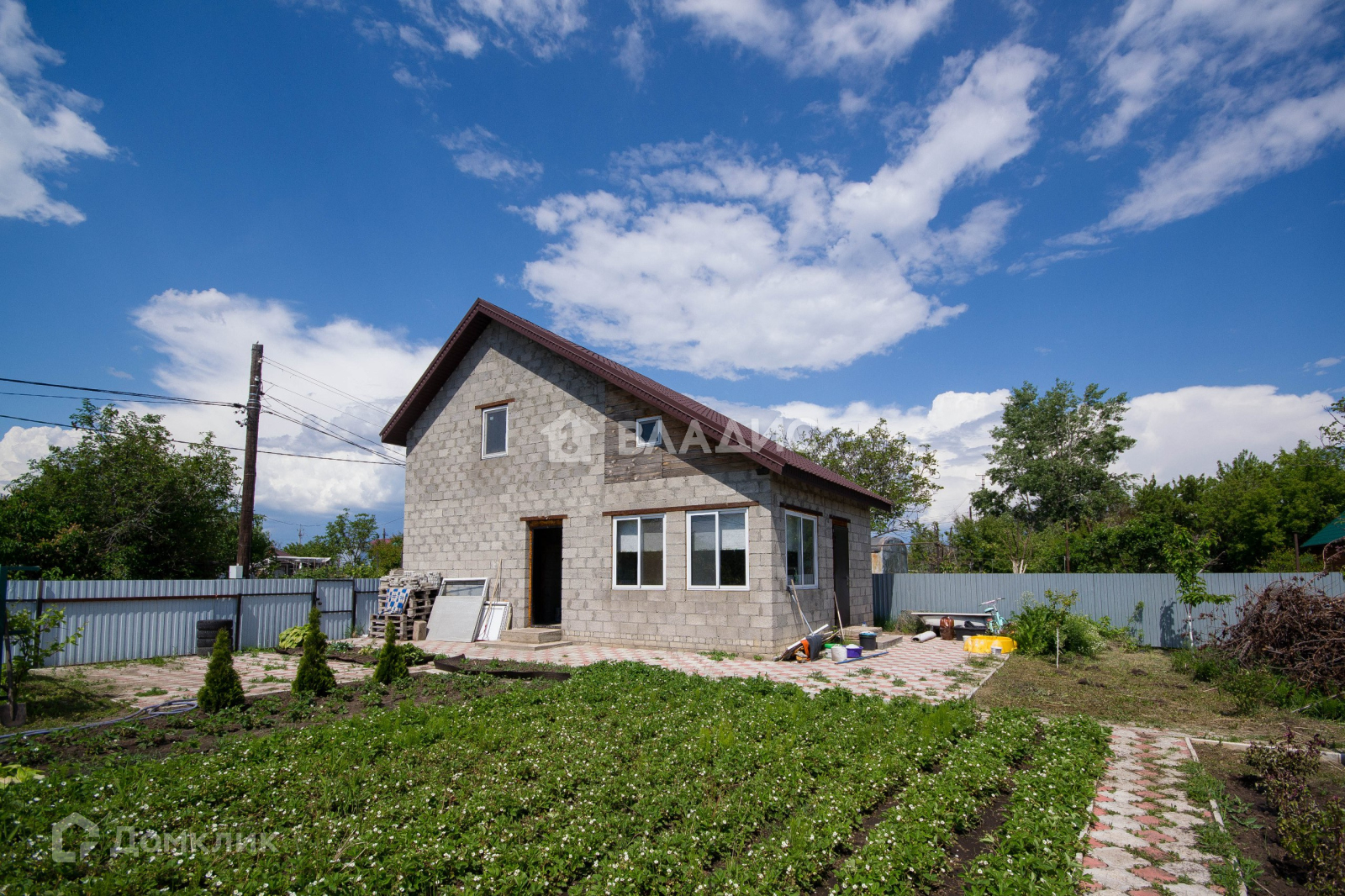 Благоустройство: выполнены дорожки из тротуарной плитки. Залиты фундаменты под баню и хозблок.