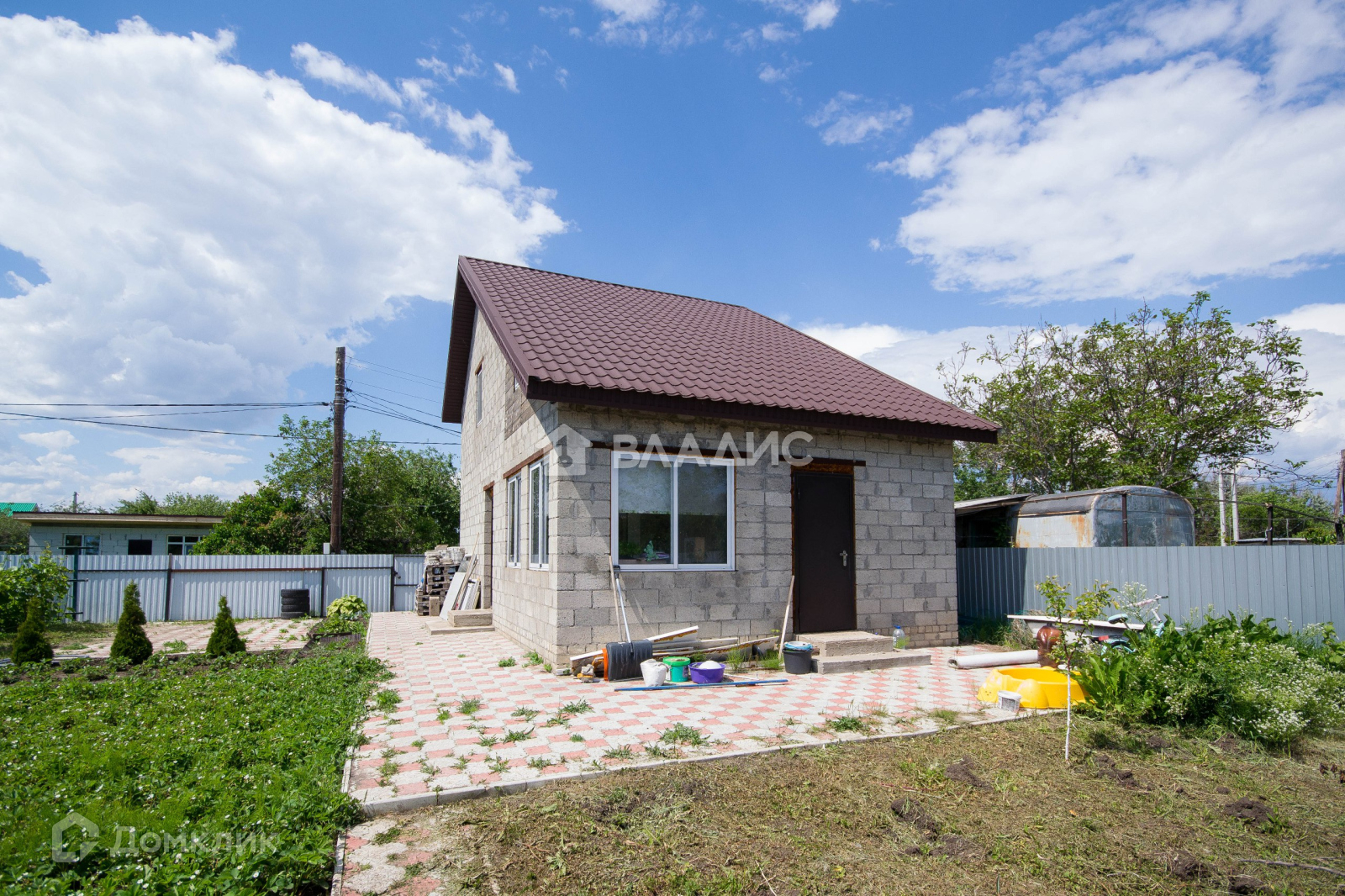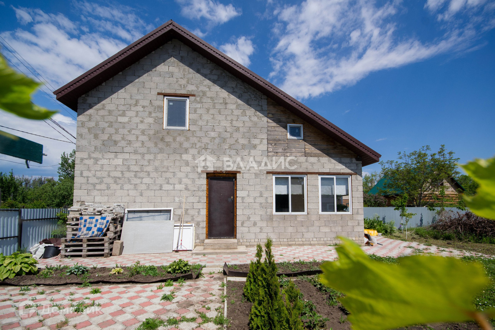 Дом имеет площадь 100 кв м. Материал стен - керамзитный блок.Фундамент ленточный и армированная плита. Кровля металлочерепица. Крыша утеплена. Везде установлены качественные пластиковые окна, металлические входные двери. Дом построен больше 5ти лет назад. По плану должно быть два этажа. На первом кухня, холл, комната. На втором - 1 комната. В одной комнате сделана отделка, в остальных помещениях сможете сделать отделку на свой вкус и по своим предпочтениям.