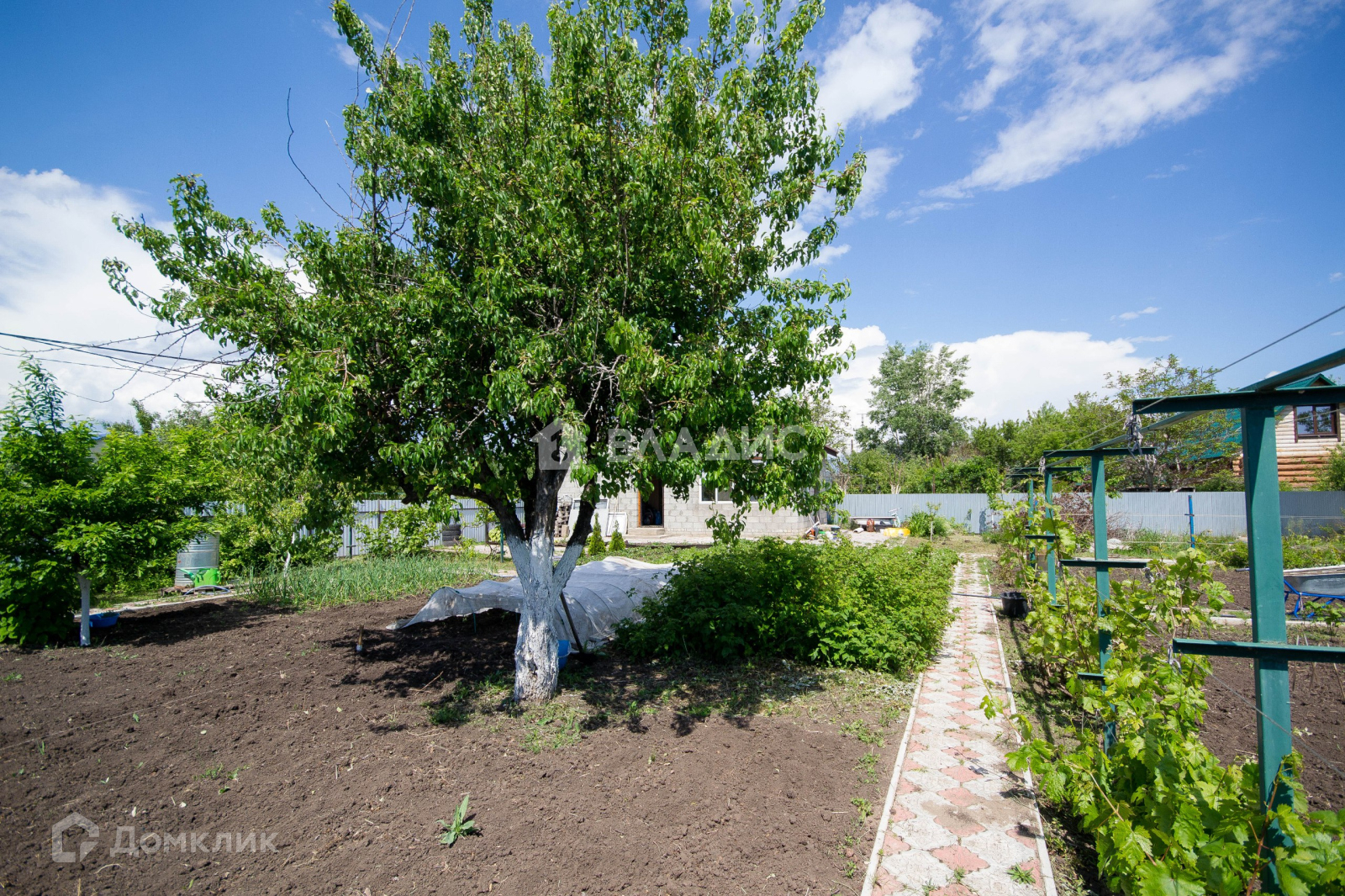 Насаждения: много клубники, малина, смородина, черешня, вишня, слива, груши, яблони, виноград.