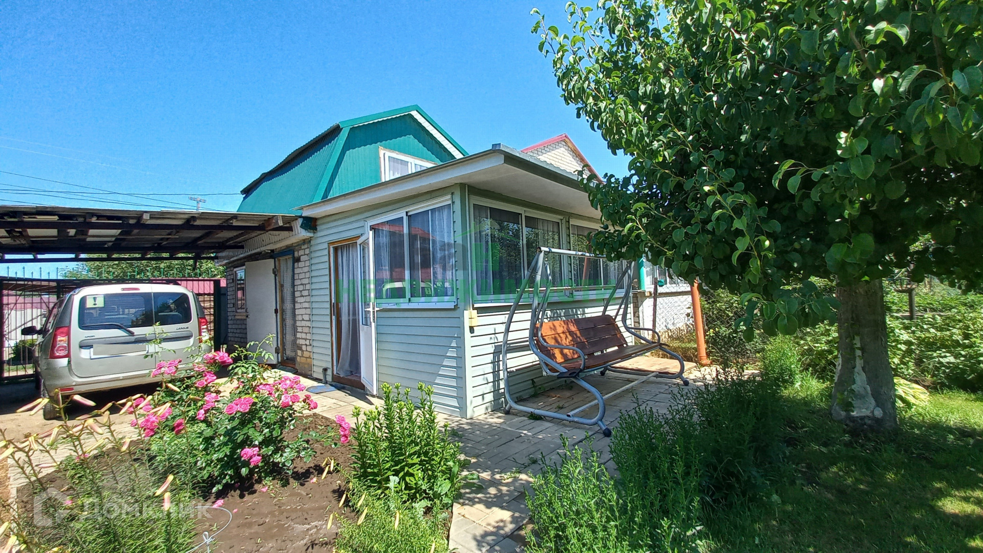На участке 2-х этажный кирпичный дом общей площадью 49 кв.м. с навесом для машины, в котором на первом этаже просторная кухня с комнатой, на втором этаже комната. В доме косметический ремонт, установлены хорошие окна, вся мебель и техника останется новым собственникам.